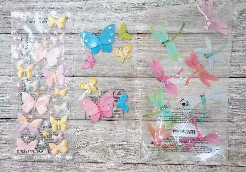 Mariposa Libélulas Dimensionales Divertidas Pegatinas EK Éxito 3 Paquetes Abiertos Nuevo