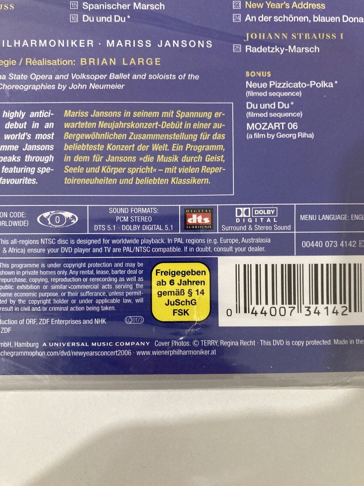 Mariss Jansons New Years Concert 2006 Wiener Philharmoniker DVD New!. Condition is Brand New. See photos for reference on condition. Slight damage in bottom back label. Shipped with USPS First Class.