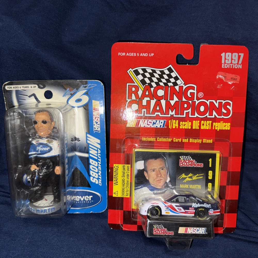 The product is a Mark Martin mini Bobble Head and a Racing Champions 1997 Edition Nascar Car in 1/64 scale. This collectible set features a Ford racecar driven by Mark Martin in the NASCAR series. Made of diecast material, the multi-color car is a great addition for fans of Nascar racing and Mark Martin. This authentic replica is a must-have for any racing enthusiast looking to add a piece of racing history to their collection.
