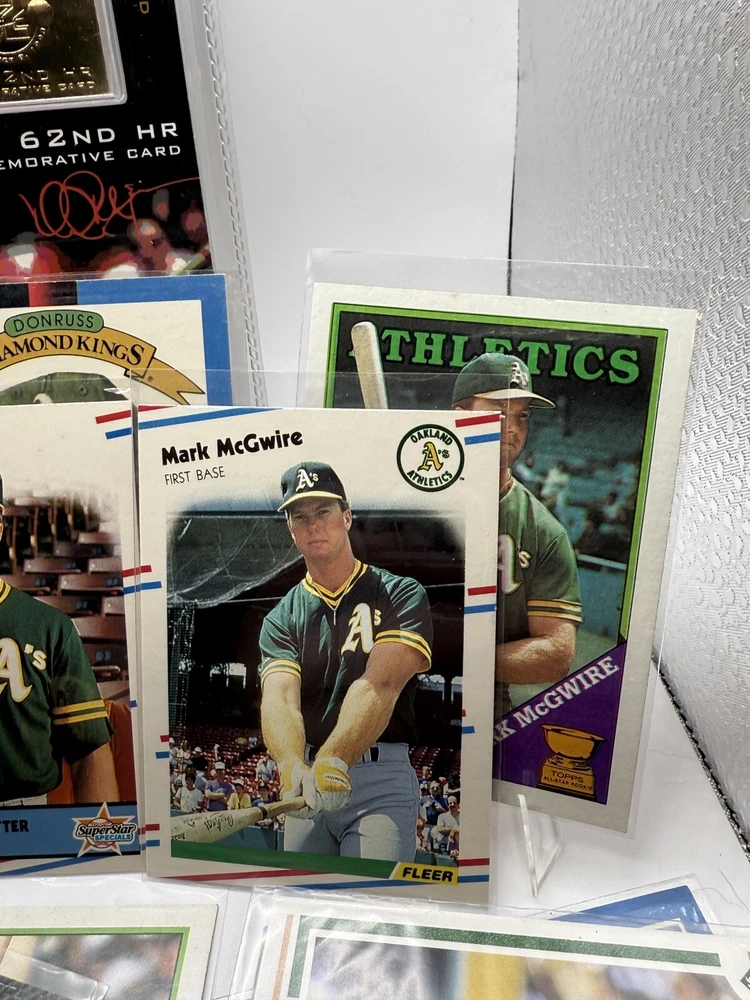 ⚾ Own a Piece of Baseball History! ⚾ This amazing Mark McGwire collectible lot is a must-have for any baseball fan or card collector. Featuring a stunning 23kt gold commemorative card and a variety of vintage baseball cards, this set captures the legendary career of one of MLB’s greatest sluggers. Included in This Lot: ✨ Official 23kt Gold Card – Limited Edition commemorating McGwire's record-breaking 62nd home run. Individually numbered and encased in original packaging. ✨ Assorted Baseball Cards – A mix of iconic Mark McGwire cards from brands like Topps, Fleer, Donruss, and Upper Deck. Includes rookie cards, highlights, and team memorabilia. 💡 Highlights: Great for collectors or as a gift for a sports enthusiast! A fantastic way to celebrate McGwire's legendary career with the Oakland Athletics.