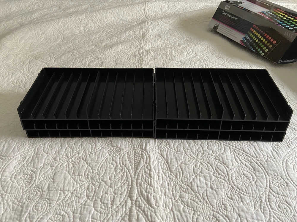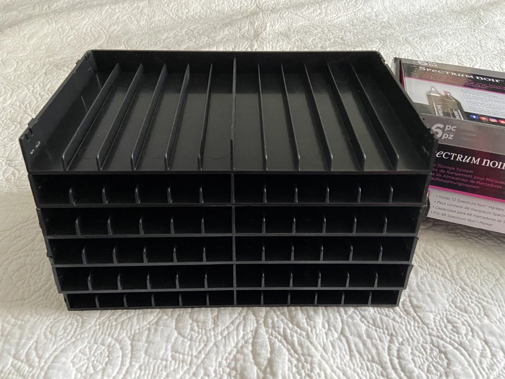 Keep your markers organized and easily accessible with this marker holder from Spectrum Noir. With 72 slots, this organizer is perfect for storing all your favorite markers. The black color and sleek design make it a stylish addition to any desk. Made of durable plastic, this marker holder is built to last. It measures 12.24x7.01x4.09 inches, making it the perfect size for any desk. Whether you're a student, teacher, or professional, this marker holder is a must-have for keeping your markers organized and easily accessible.