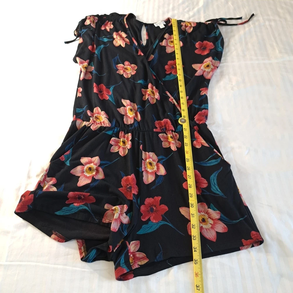 Seller Notes: “Used, in good condition” Material: 93% Rayon, 7% Spandex Theme: Flower Type: One-Piece Number of Pieces: 1 Piece Size: L Color: Multicolor Pattern: Floral Brand: Market & Spruce Sleeve Length: Short Sleeve Size Type: Regular Style: Romper Department: Women
