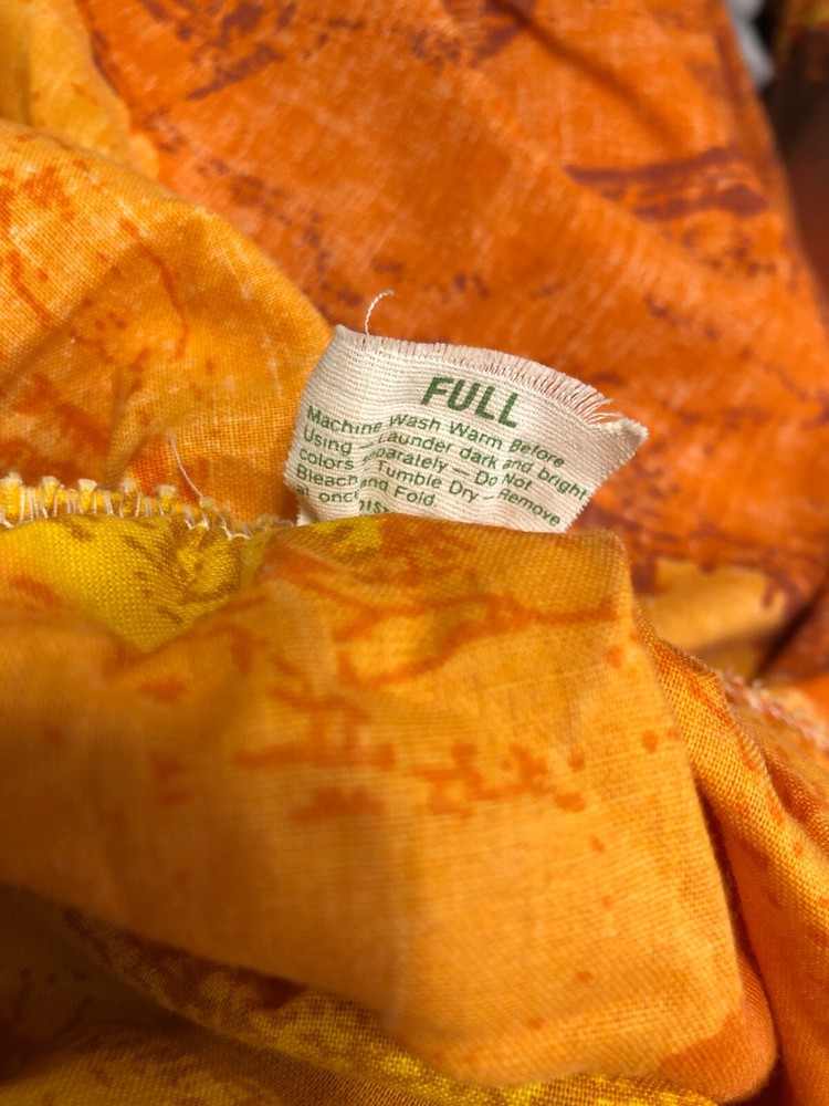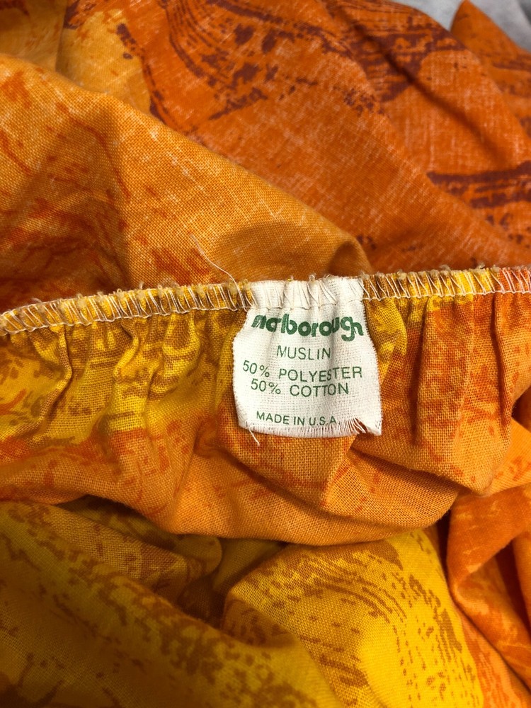 Material: Cotton Blend Care Instructions: Easy Care, Machine Washable, No Iron Item Length: 74" + 6.5" drop on each side (Roughly 87" total) Personalize: No Type: Fitted Sheet Pattern: Desert UPC: Does not apply Size: Double Item Width: 53" + 6.5" drop on each side (Roughly 66" total) Brand: Marlborough Shape: Rectangular gtin13: Does not apply Seller Notes: “Nice with no stains, rips or holes.” Room: Bedroom MPN: Does Not Apply Country/Region of Manufacture: United States Features: Machine Washable, Vintage, No Iron Color: Orange Style: Southwestern Custom Bundle: FULL fitted sheet and 2 pillowcases Theme: Nature, Southwest, Sunset, Monument Valley, Mountain, Outdoor