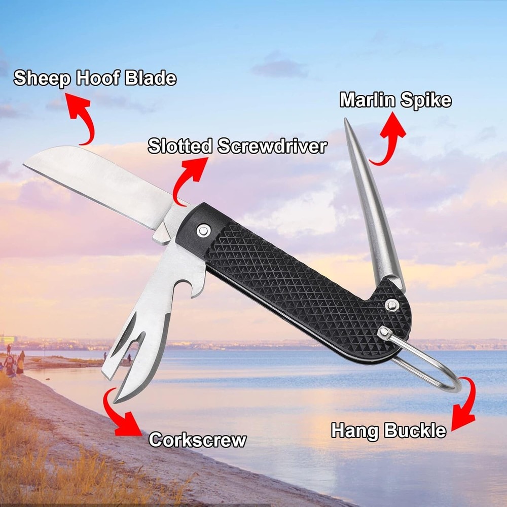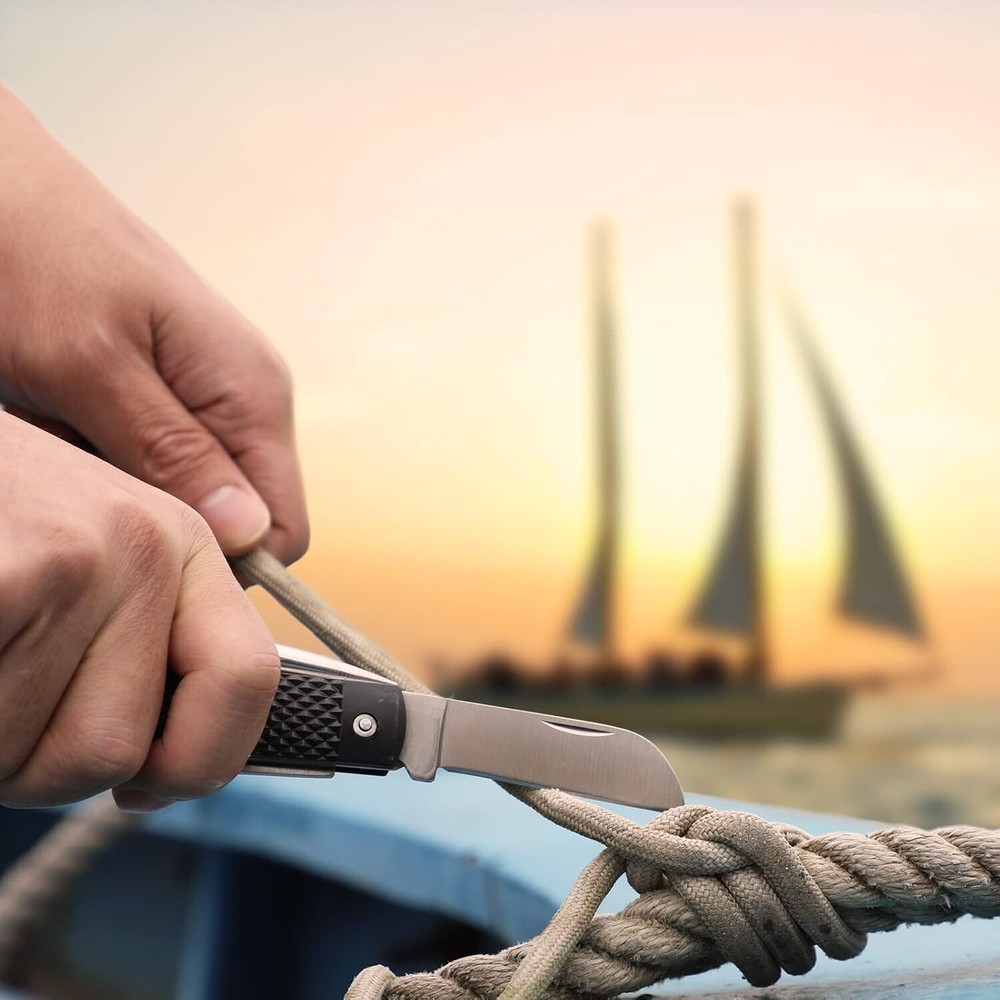 Marlin Spike Rigging Knife, Multi-Function Sailing Knife Sailor Knife, Suitable for Camping, Boating, Fishing or AUB09LRY7184 0 ⛵【Multifunctional Use】 One end of the rigging knife is a sheepsfoot blade, which is convenient for sailors, assemblers and shipbuilders to use daily on the ship, and is equipped with a shackle opener to open and tighten the screw pin shackles used on offshore rigging. A flat screwdriver bit is also arranged at the end of the knife. ⛵【Marlin spike knife】 The other end of the rigging knife is the marlin spike, which is the main tool for all ropes. It can quickly untie the rope for splicing and unknotting, particularly if the knot has been repeatedly soaked and strained over the course of time. There is also a lanyard loop for safe storage, which is flexible and convenient to use. ⛵【Selected material】 DULEES Sailor knife blade and marlin spike are made of 58-60C hardness stainless steel. With the correct precision, it will improve the hardness and wear resistance of Sailing Knife, corrosion resistance and durability. The non-slip scale patterned handle and comfortable grip make this rigging knife easy and safe to use. It is recommended to wash with water after use. ⛵【Convenient storage】 Rigging knife is equipped with a storage bag with a ring. When the operation is over or is not needed temporarily, the marlin spike knife can be easily stored on the belt to free your hands or other sailing activities when participating in boating, fishing or sailing. ⛵【Best Gift】 This is a great holiday gift, Christmas present, surprise for your husband, father, men and for women also who like to get the work done by themselves. Marlin spike knife is great for things like boating, sailing, fishing, camping. would make a great addition to your camping gear, boating gear, go-bag. Power source type: Manual