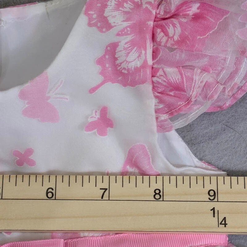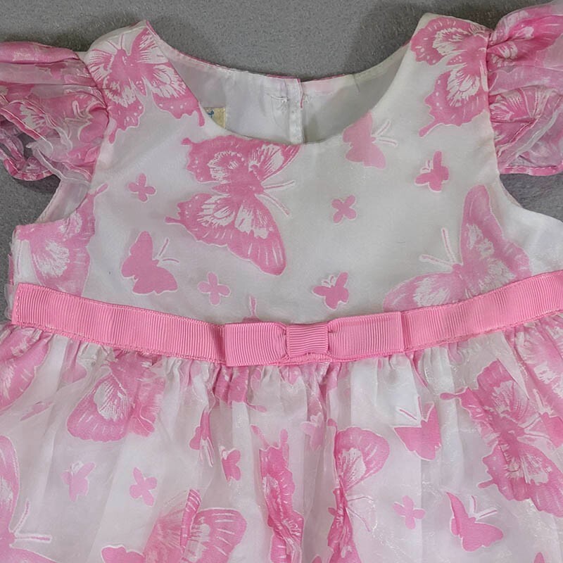 Marmellata Toddler Dress 6 months Pink White Butterflies Flutter Sleeve Babydoll