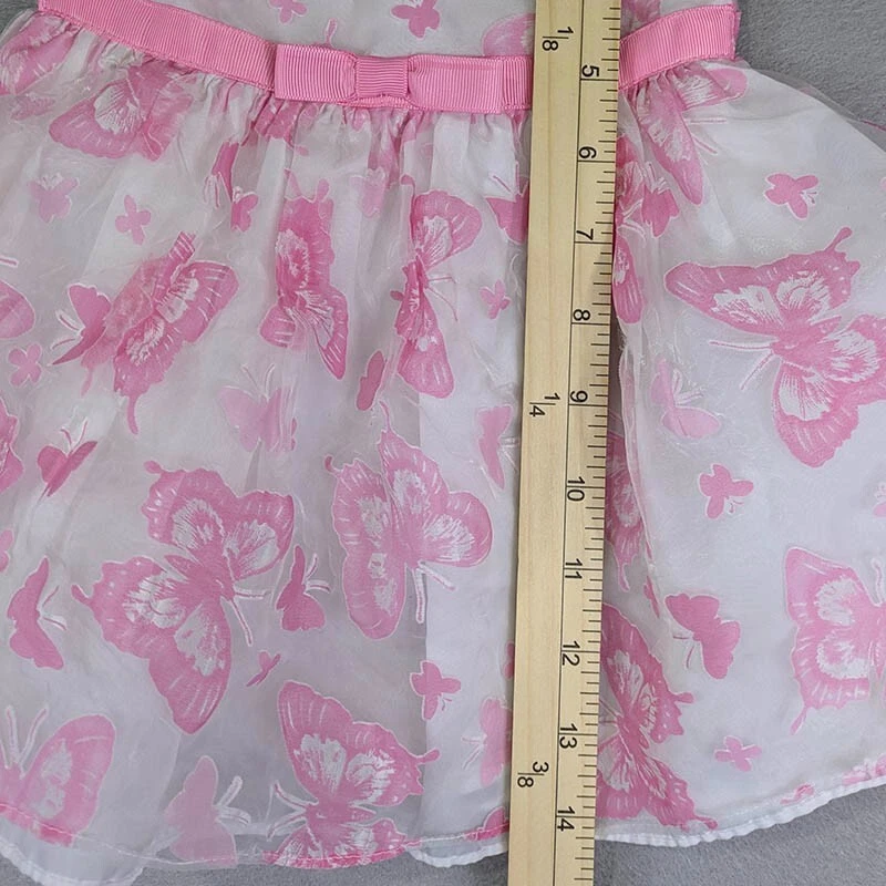 Marmellata Girls Toddler Dress Easter Pink & White Butterflies Flutter Sleeve Babydoll Netting 6 months Could be used as Doll Clothes 100% Polyester Machine Wash Tumble Dry Pit to Pit 9" Length14" All measurements are approximate and done with garment laid flat Measurements in Photos No tears, stains or holes, very good pre-owned condition Fast Shipping!