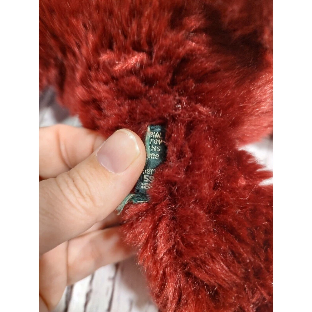 Maroon red Valentine's Day stuffed teddy bear with bow stuffed animal plush in good condition.