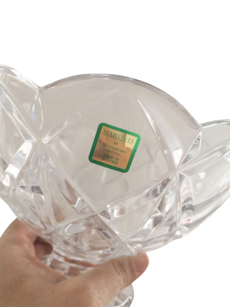 This decorative bowl from Marquis by Waterford is crafted from premium crystal, offering an elegant touch to any setting. With its classic design and intricate patterns, it serves as a stunning centerpiece or display piece. Suitable for both formal and casual settings, adding sophistication to your decor. • Intricate diamond pattern design • Made from high-quality crystal • Pedestal base for added stability • Ideal for serving or as a decorative item • Measures 8 inches in diameter Excellent Condition Made in Austria Diameter: 8 inches Clear color ( background is white so it is reflecting off background in the photos) Condition: Pre-Owned Good shop the rest of my closet for: Beautiful gothic chic cozy hippie free people Anthropologie retro vintage Victorian trending Coachella 70s 80s 90s 2000’s witchy UO doen spell valentine date night iso rare western festival wedding Bachlorette bohemian cottagecore minimalist sexy soft suede 2 4 6 8 10 12 women’s spring summer XS S M L XL Sabrina core Taylor western hippie boho
