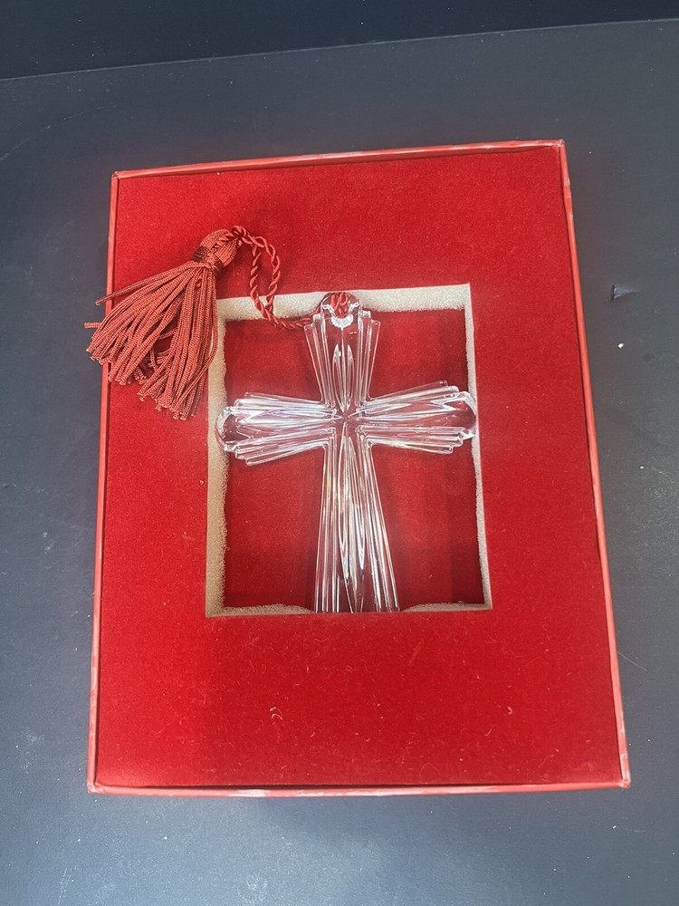 The Marquis Waterford Crystal Cross Christmas Ornament is a small, clear ornament in the shape of a cross, designed for hanging and decorative purposes. Made of high-quality crystal, this contemporary-style ornament features a religious theme, making it ideal for Christmas celebrations. This ornament is part of the Waterford collection, crafted in Germany with intricate details that add a touch of elegance to any holiday decor.