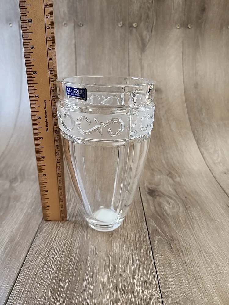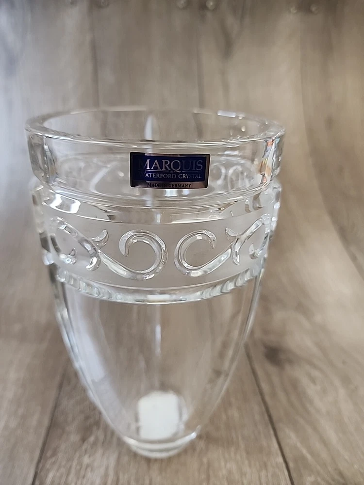 This elegant glass vase from Waterford's Marquis collection is a stunning addition to any home decor. The Odyssey pattern and geometric theme add a touch of sophistication to any room. Crafted from high-quality crystal glass, this vase is both durable and beautiful. Measuring 8 inches in height, this vase is perfect for displaying flowers or as a standalone decorative piece. The vintage design and Bridal Bouquet product line make it a unique and special item. Whether you're a collector or simply looking for a beautiful vase, this Waterford Marquis Odyssey Clear Glass Vase is sure to impress.