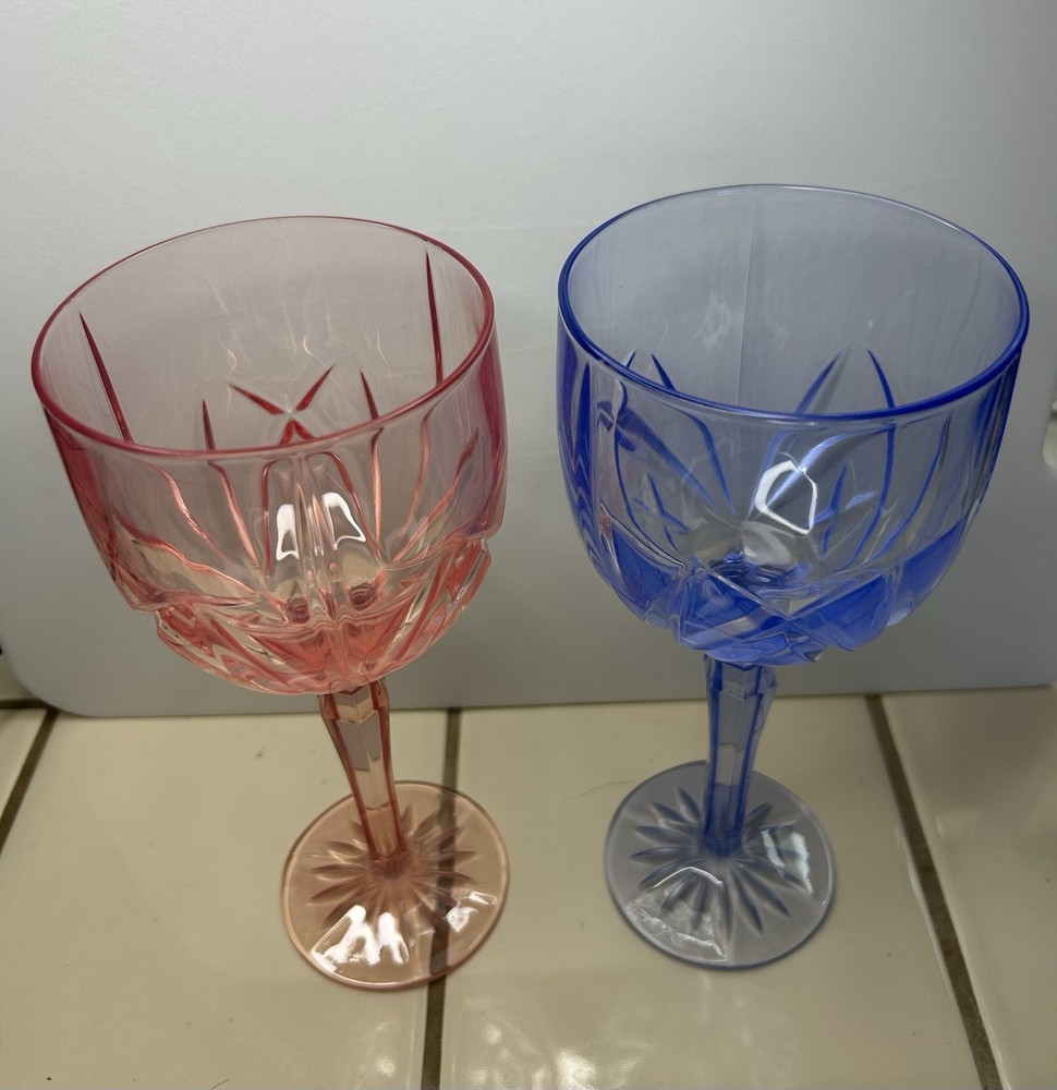 (2)Marquis By Waterford Brookside Pastel Crystal All Purpose Wine Goblet Glasses