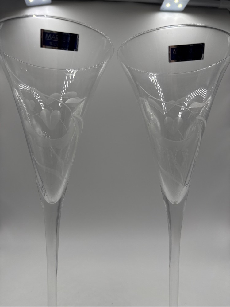 The Marquis By Waterford Celebration Champagne Flutes are a sleek and elegant pair of wine glasses perfect for all occasions. Made of clear glass with a swirl pattern, these modern champagne flutes are perfect for celebrating any special event. The two-piece set is easy to care for with hand wash only instructions, making them convenient and practical for any home. Signed by the renowned brand Marquis, these champagne flutes are a must-have for any unisex adult looking to add a touch of sophistication to their drinkware collection.