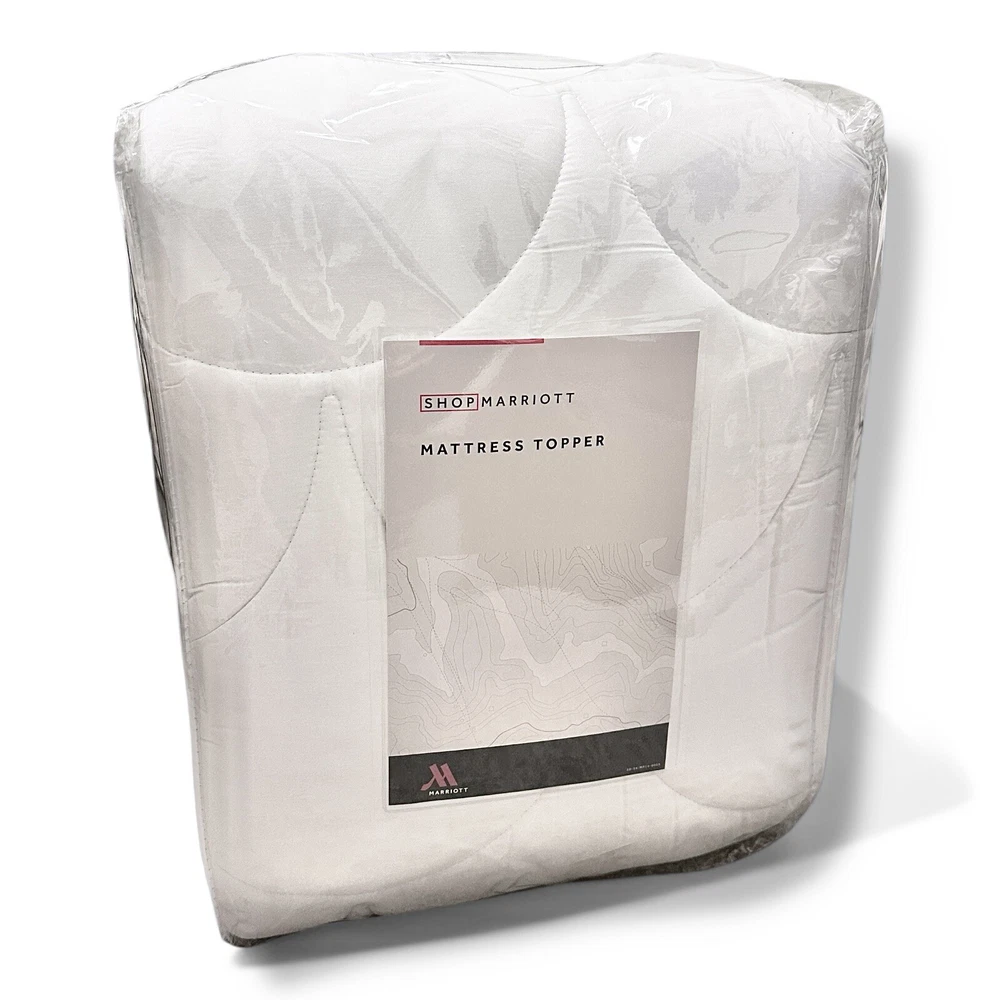 Marriott Mattress Topper - Plush, Quilted Mattress Pad with Hypoallergenic Fill - Fits Mattresses Up to 15" - Queen size (60 x 80 x 13) - New with Tags; 100% Authentic from Marriott - Free shipping within the U.S. Retail $179 HIGHLIGHTS • A Marriott Guest Favorite • Polyester fill • 100% cotton cover • Expandable skirt • Machine washable Marriott Mattress Topper Highlights • Unmatched Comfort: Experience the luxurious feel of the Marriott Mattress Topper, designed to enhance your sleep quality. • Sewn-Through Design: Keeps the extra-fluffy filling evenly distributed for consistent comfort. • Full-Body Embrace: Soft and plush material cradles your body from head to toe. • Silky-Soft Fabric: So comfortable, you’ll wonder if sheets are even necessary. • Hotel-Quality Plushness: Brings the lightweight, plush comfort of a Marriott stay into your home. • Mattress Protection: Shields your mattress while adding an extra layer of indulgence.