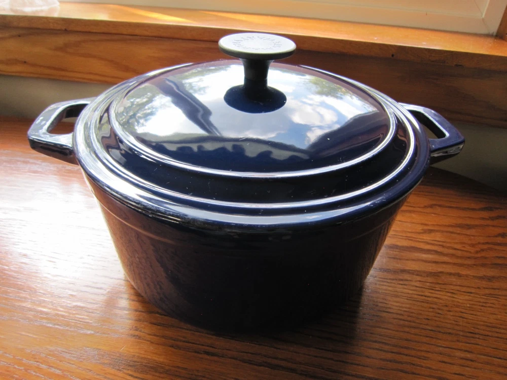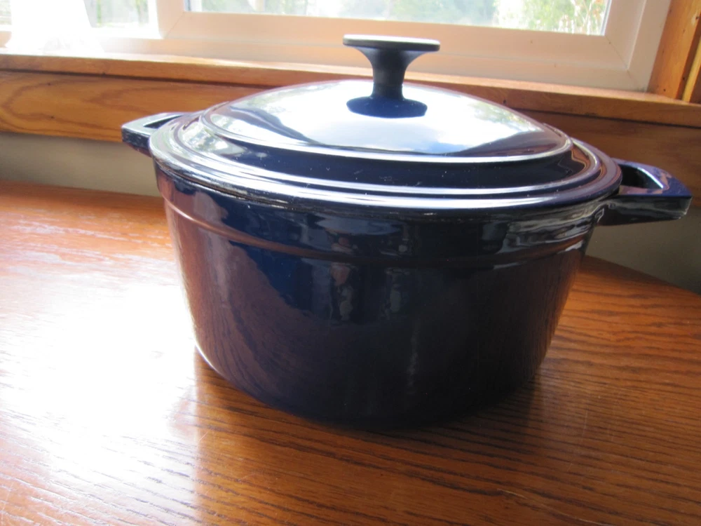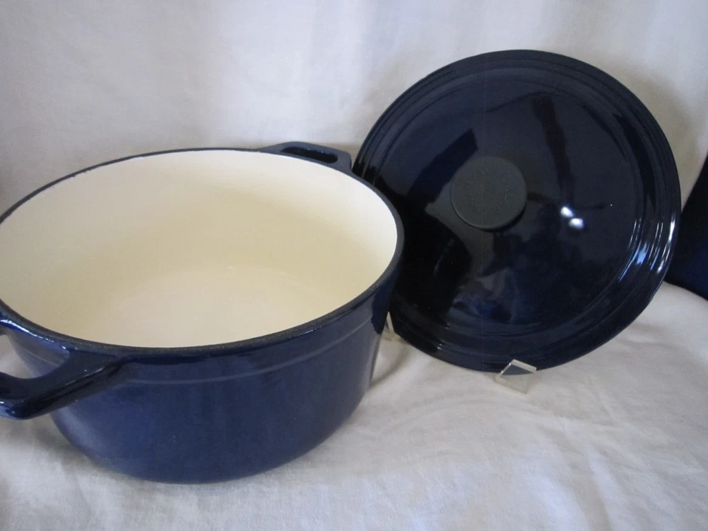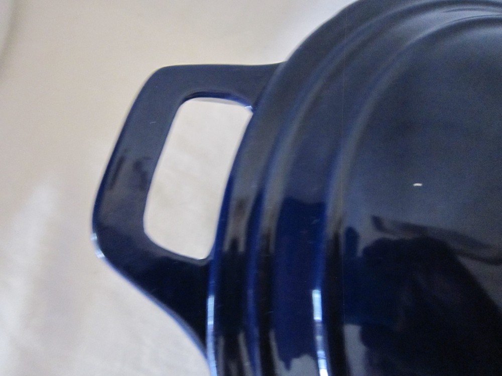 Beautiful Colbalt Blue Martha Stewart Enameled Cast Iron Dutch Oven Lid 5 Qt. 10” X 5” Holds 5 Quarts Sits Flat Small surface chip on Lid (See Last Photo) Please See Photos. Any Questions Feel Free to Contact Me.