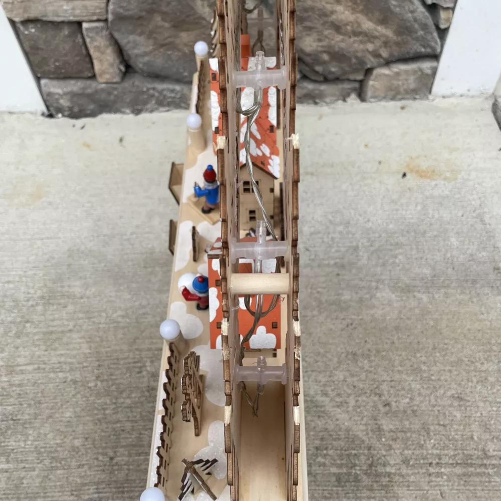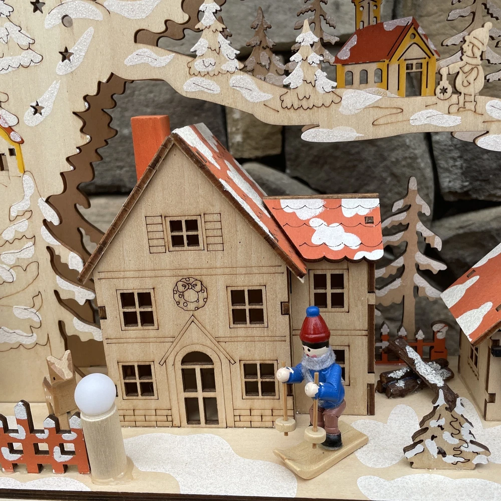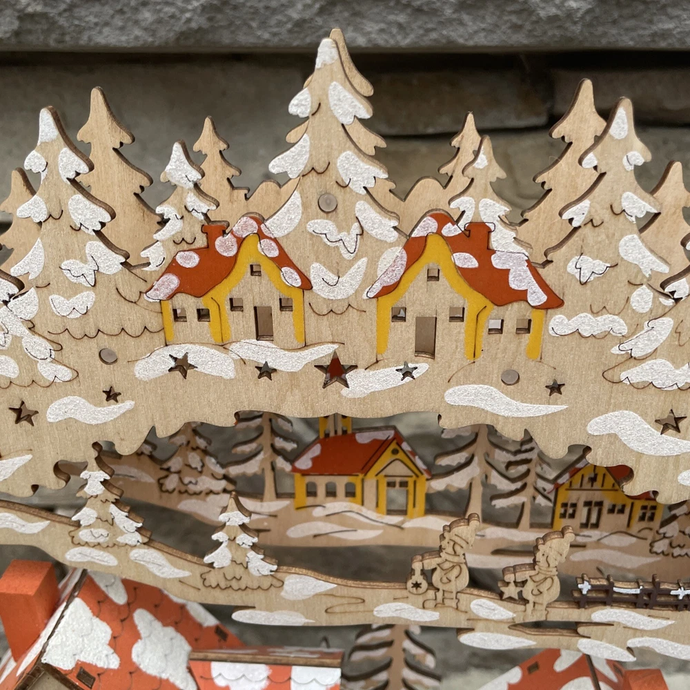 This festive Martha Steward Adventure calendar has led lights and has a lot going on. Please be aware and see pics as there are a few tree tips missing, otherwise a beautiful piece. The kidos will love it! Has led lights and takes 2?AA which are not included. You’ll love the details on this piece