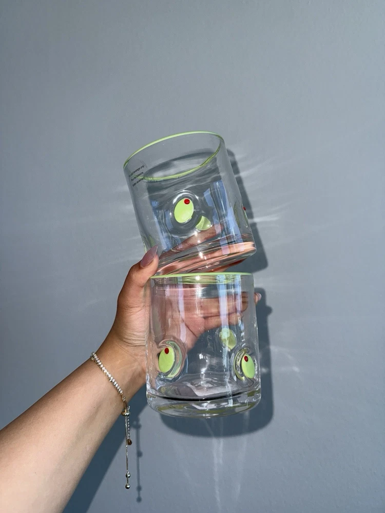 The Martini Olive Icon Glasses are a stylish and versatile addition to any home bar or collection. These round glass glasses feature a clear color with a playful martini and cocktail theme, perfect for all occasions. The hand wash only care instructions ensure that these glasses remain in top condition for years to come. Ideal for adults, these glasses are sure to elevate your drinkware game with their trendy design and unique Anthropologie dupes appeal.