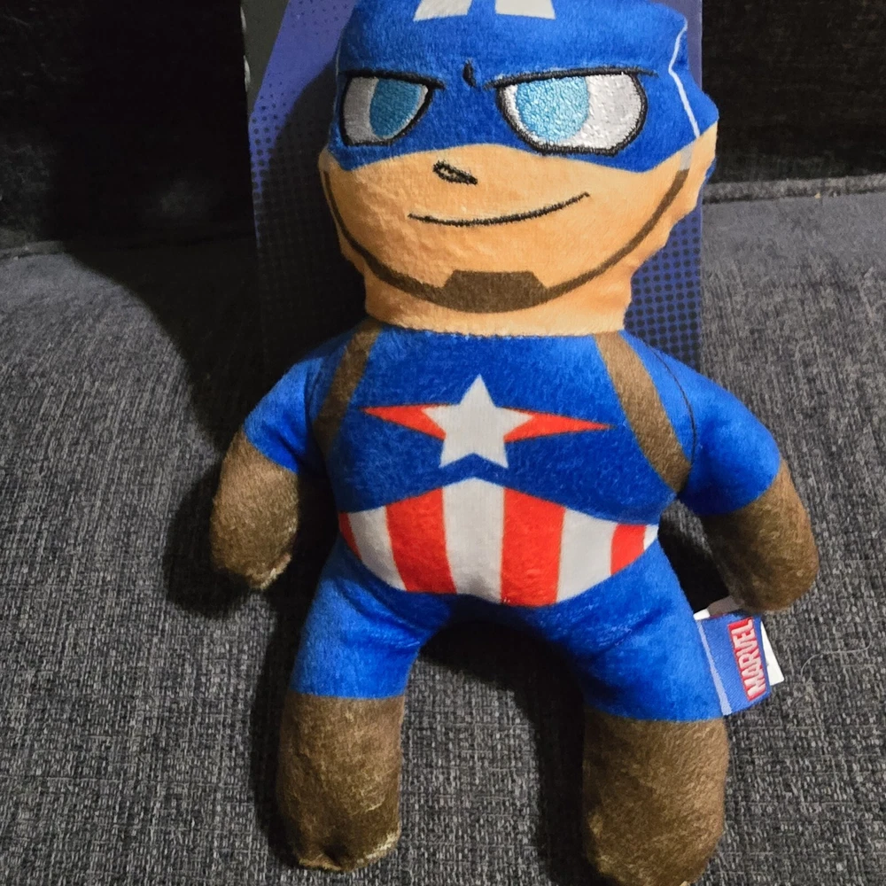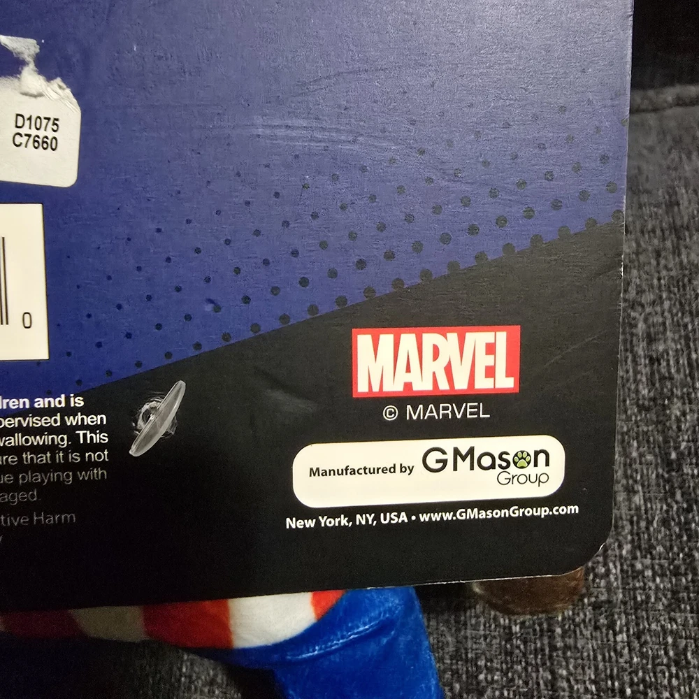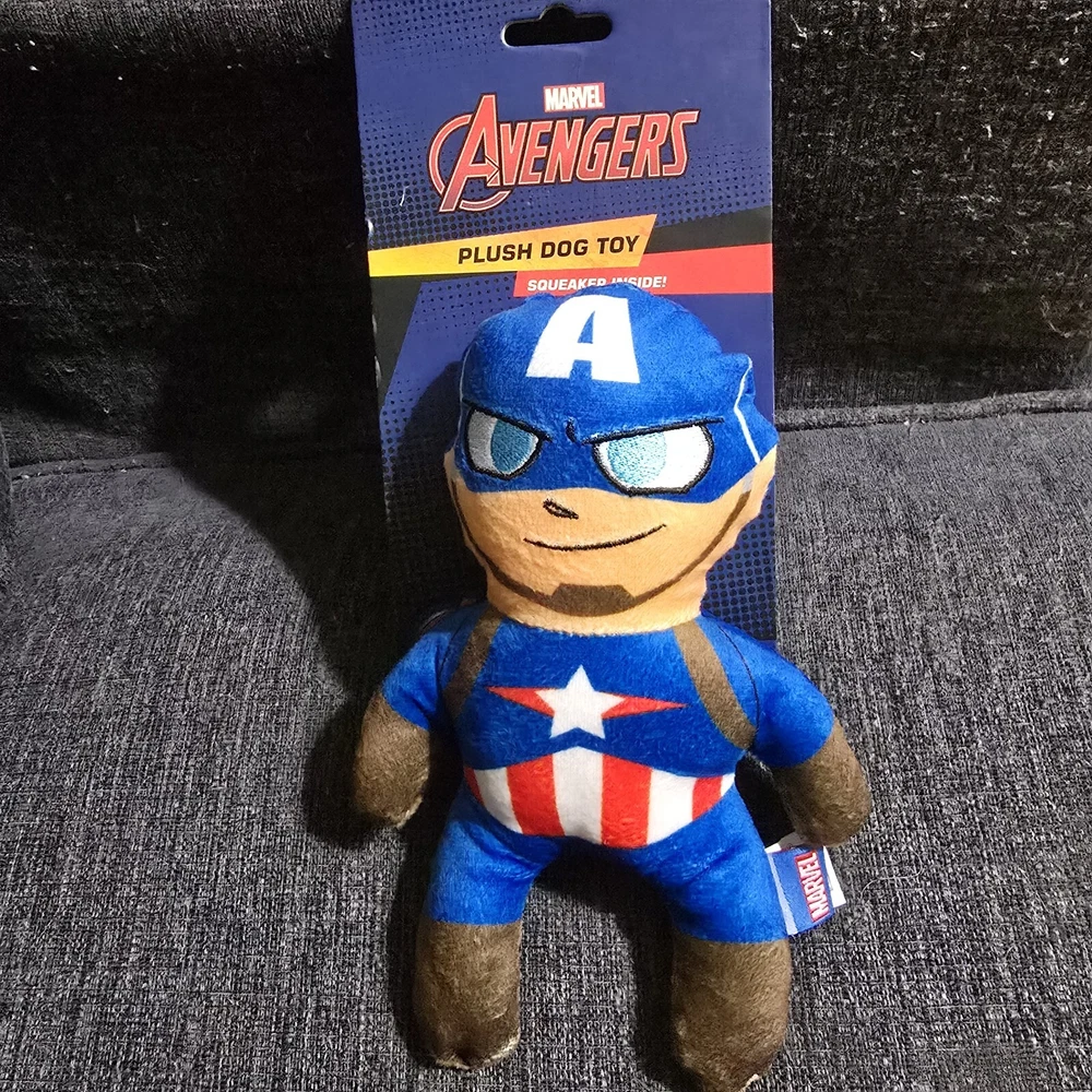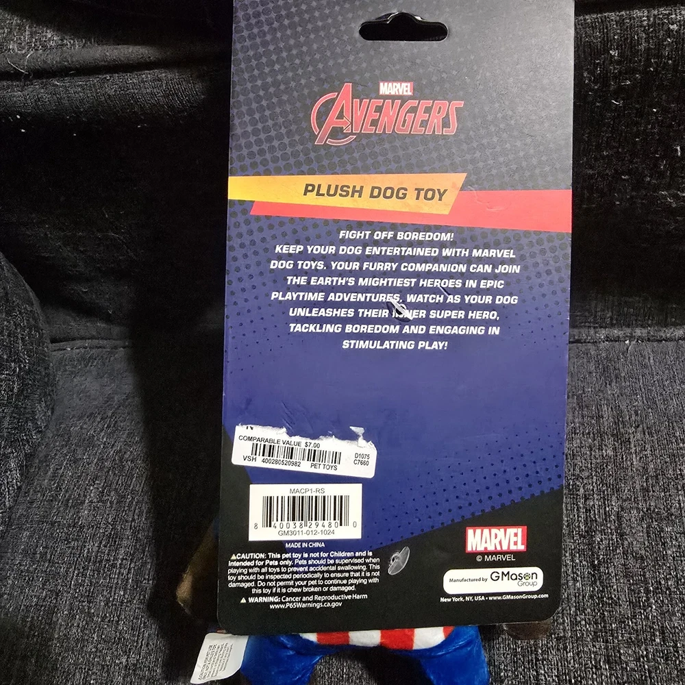 Material:PlushFeatures:Squeaky, Captain AmericaDog Size:8inchgtin13:Does not applyUPC:Does not applyModel:ToyCountry/Region of Manufacture:ChinaBrand:MarvelType:Plush/Squeky