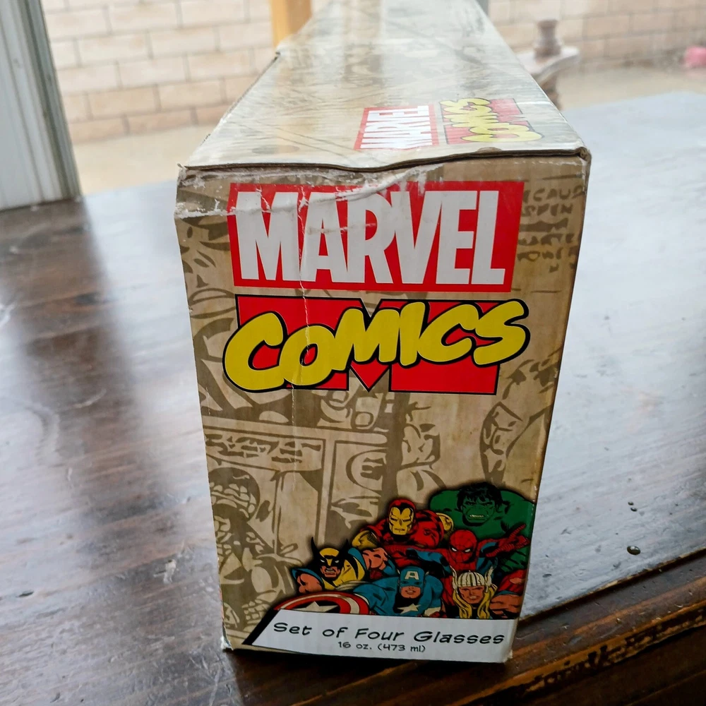 Theme: Superheroes Character Family: Marvel Type: Glass Glassware Type: Glassware Set Capacity: 10 Oz Model: Marvel Comics Brand: Marvel Material: Glass Department: Adults Seller Notes: “Never been used. One side of box has crease, see photos. Very good condition.” Occasion: All Occasions Color: Multicolor