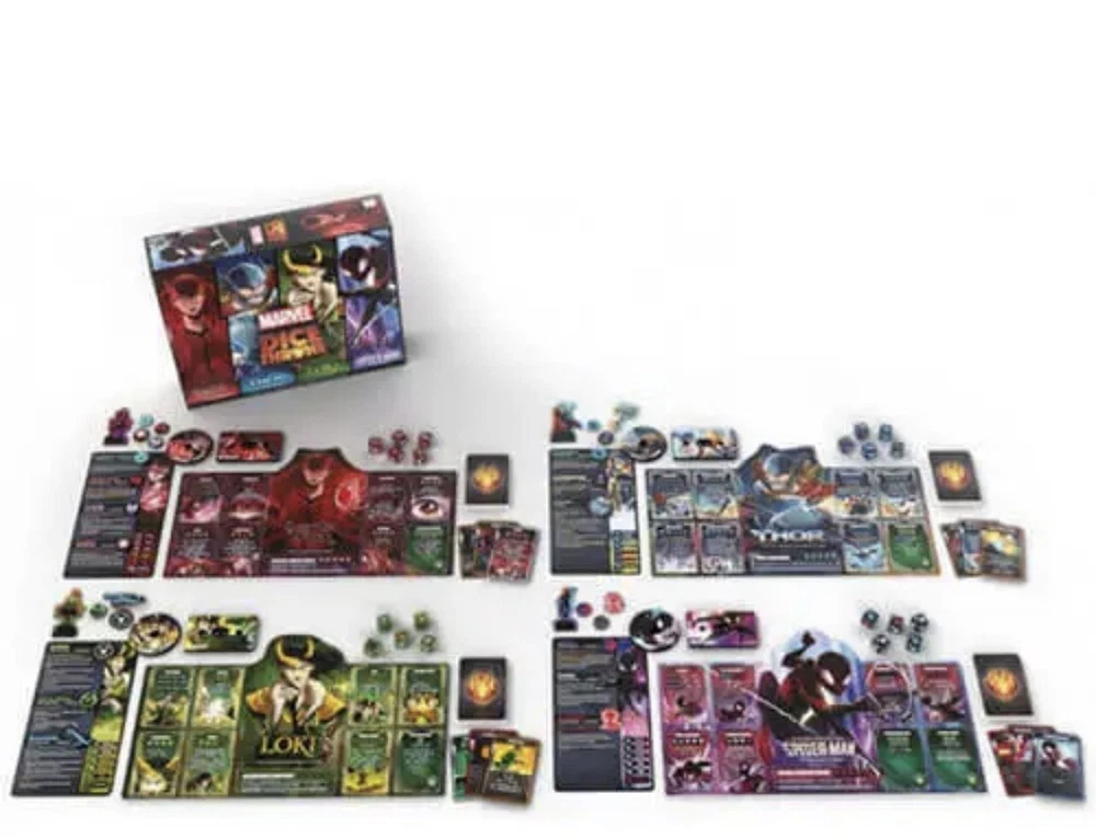 Marvel Dice Throne 4 Hero Box Scarlet Witch Thor Loki and Spider Man Ages 12+