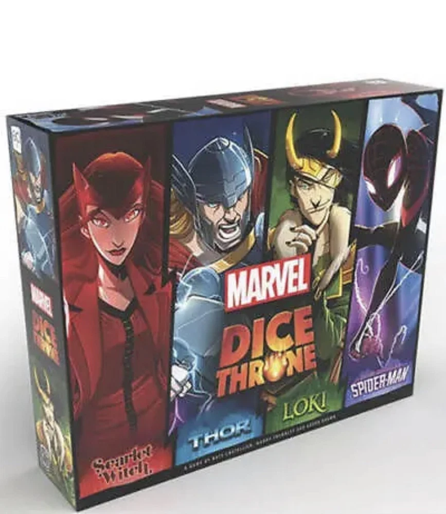 HomeMarvel Dice Throne 4 Hero Box Scarlet Witch Thor Loki and Spider Man Ages 12+