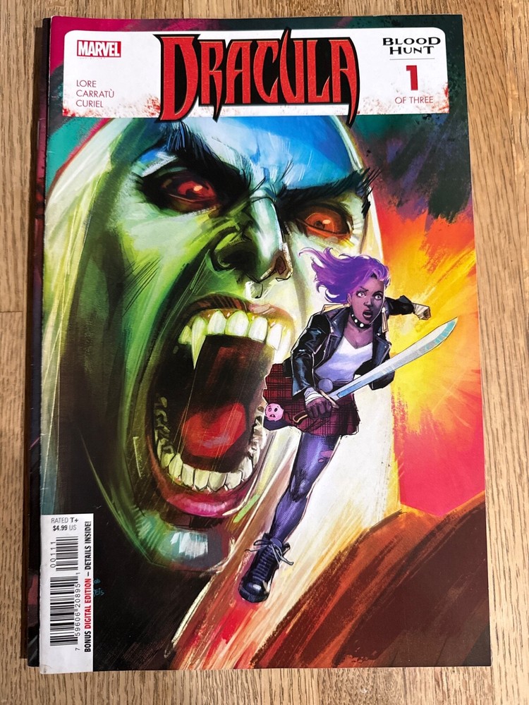 Marvel: Dracula: Blood Hunt #1. Issued: July 2024. Writers/Artists: Lore, Carat, Curiel. Marvel: Dracula: Blood Hunt #2. Issued: August 2024. Writers/Artists: Lore, Carat, Curiel. Marvel: Dracula: Blood Hunt #3. Issued: September 2024. Writers/Artists: Lore, Carat, Curiel. Marvel: What if? ....Dark Tomb of Dracula #1. Issued: January 2024. Writers/Artists: Wolfman, Cutler, Hanna, Fabela . These comic books were donated when new. They have never been in circulation. They are bagged and boarded. We will discount shipping of multiple items in a single package when possible. 100% of the proceeds from this purchase will support a non-profit library in Connecticut. See our other listings in store PBSales. ”