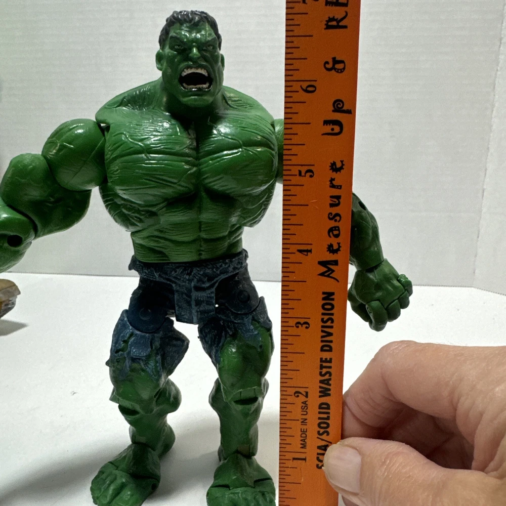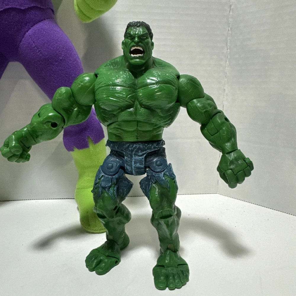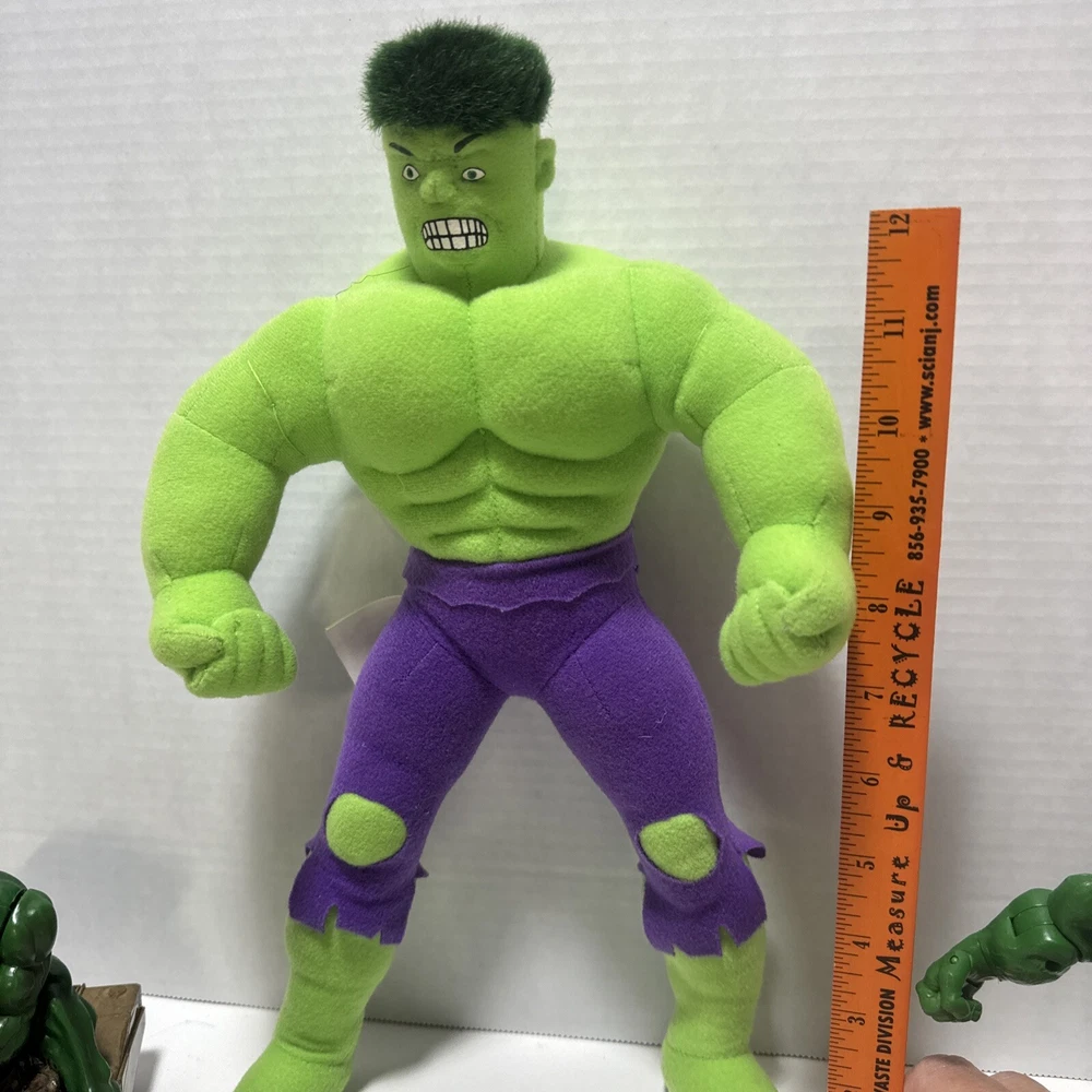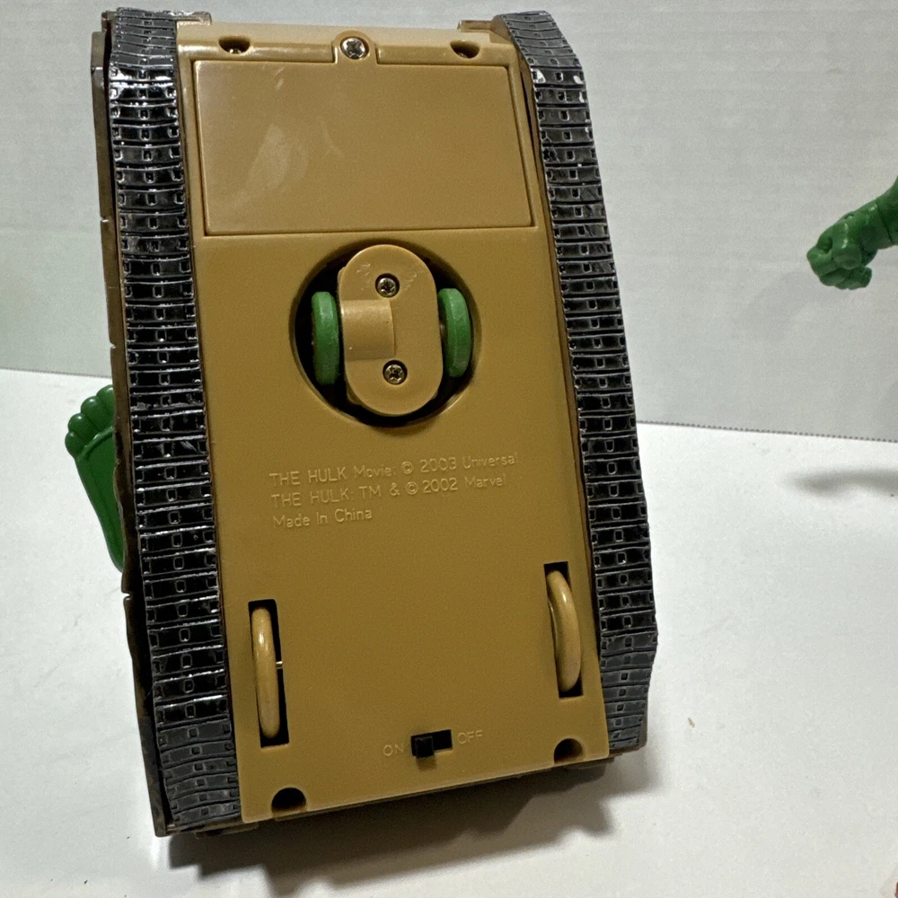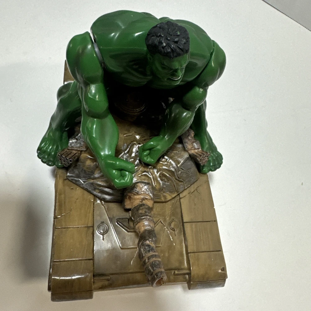 Marvel Incredible Hulk 2003 Action And Plush Figures With Tank. Lot Of 3 Items. The 14" plush hulk for ages 3 and above. The Hulk w/tank uses 2 AA batteries and compartment is clean. Sounds like a tank moving and slightly begins to spin. The 7 inch posable hulk is made with great detail. Lots of moving joints and stands alone. This lot of 3 hulk items is a great addition to a Marvel collection of any kind.