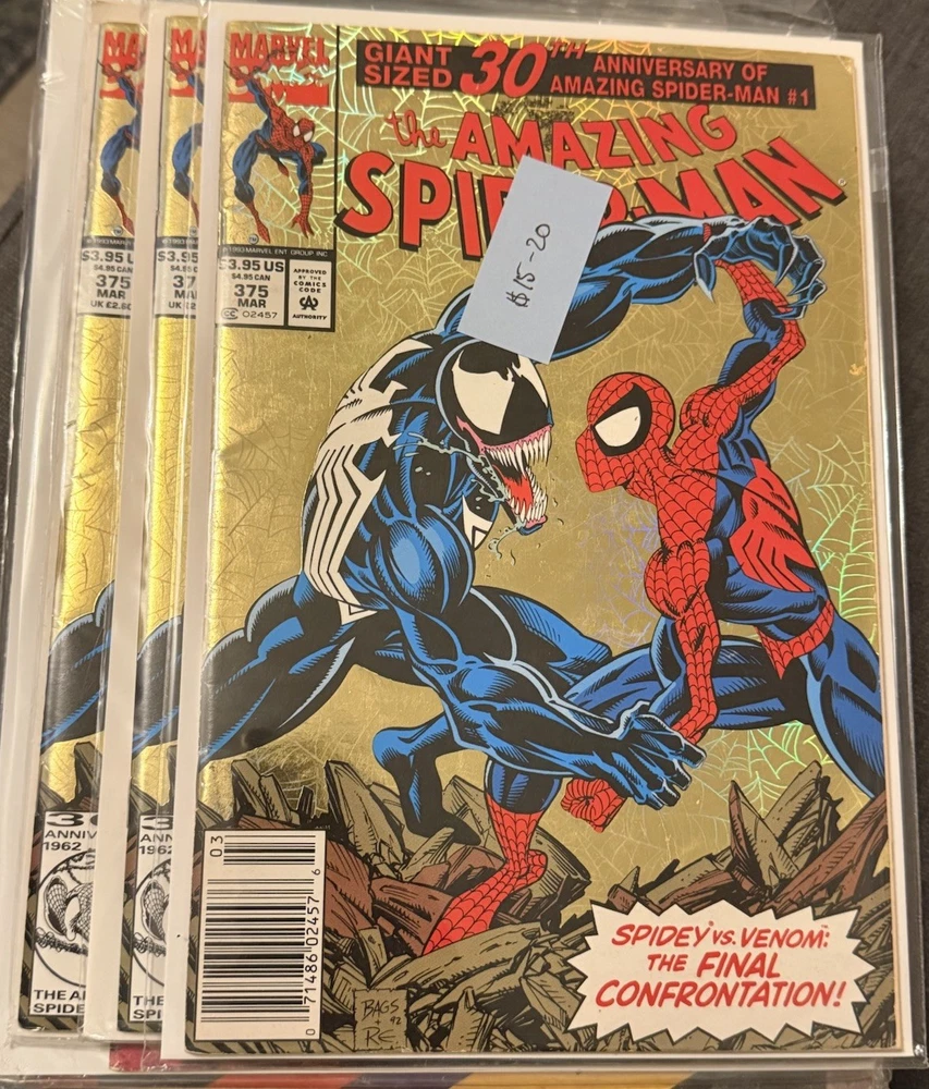 Marvel Bronze & Copper Key Comic Lot β Ant-Man, She-Hulk, Venom & More Selling a curated bundle of key and semi-key Marvel issues, perfect for upgrading a collection or quick inventory for a dealer. All books are raw, ungraded, stored bagged & boarded. βΈ» π Included in this lot: β’ Marvel Premiere #47 (1979) β 1st Scott Lang as Ant-Man (major Bronze Age key) β’ The Savage She-Hulk #1 (1980) β 1st appearance of She-Hulk β’ Venom: Lethal Protector #1 (Newsstand) β Red foil, newsstand edition β’ Venom: Lethal Protector #1 (Direct) β Red foil, direct edition β’ Amazing Spider-Man #375 (x2) β 30th Anniversary Venom vs. Spidey gold cover β’ Peter Parker, The Spectacular Spider-Man #64 β 1st Cloak & Dagger β’ Peter Parker, The Spectacular Spider-Man #90 β Black Cat / early black suit Spider-Man β’ X-Men #25 (1993) β Fatal Attractions, Magneto rips Adamantium from Wolverine β’ Wolverine #75 (1993) β Fatal Attractions fallout, bone claws reveal (If your counts differ, adjust the βx2β in the ASM / Venom lines.) βΈ» π§Ύ Condition Notes β’ All books are raw, unpressed, uncleaned. β’ Overall range is approximately VG to VF/NM (around 7.0β9.0) by eye. β’ Some light spine ticks, corner wear, or handling consistent with age. β’ No known missing pages or cut-outs. β’ Not a professional grade β please use the photos to judge for yourself. π¦ Shipping β’ All comics will ship bagged & boarded. β’ Packaged in a sturdy box with bubble wrap/packing material. β’ I combine shipping on multiple purchases. β’ Ships within 1β2 business days of payment. βΈ» π Returns β’ No returns on grading disagreements β please review all photos and ask questions if needed before buying.