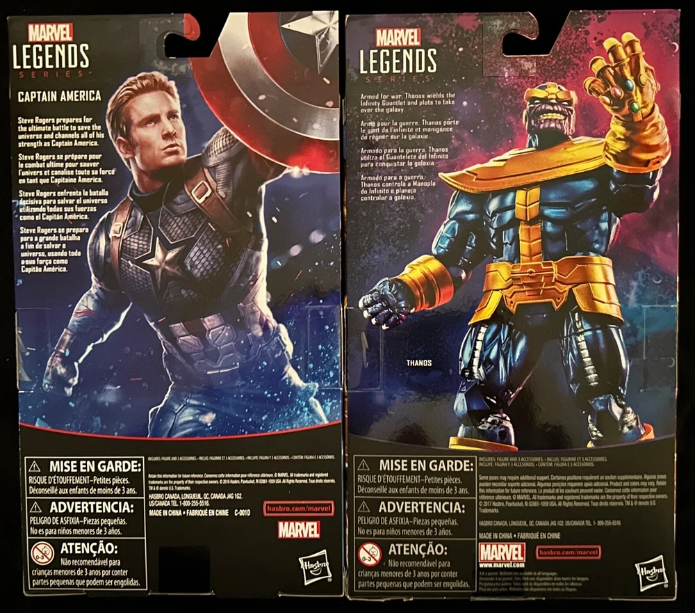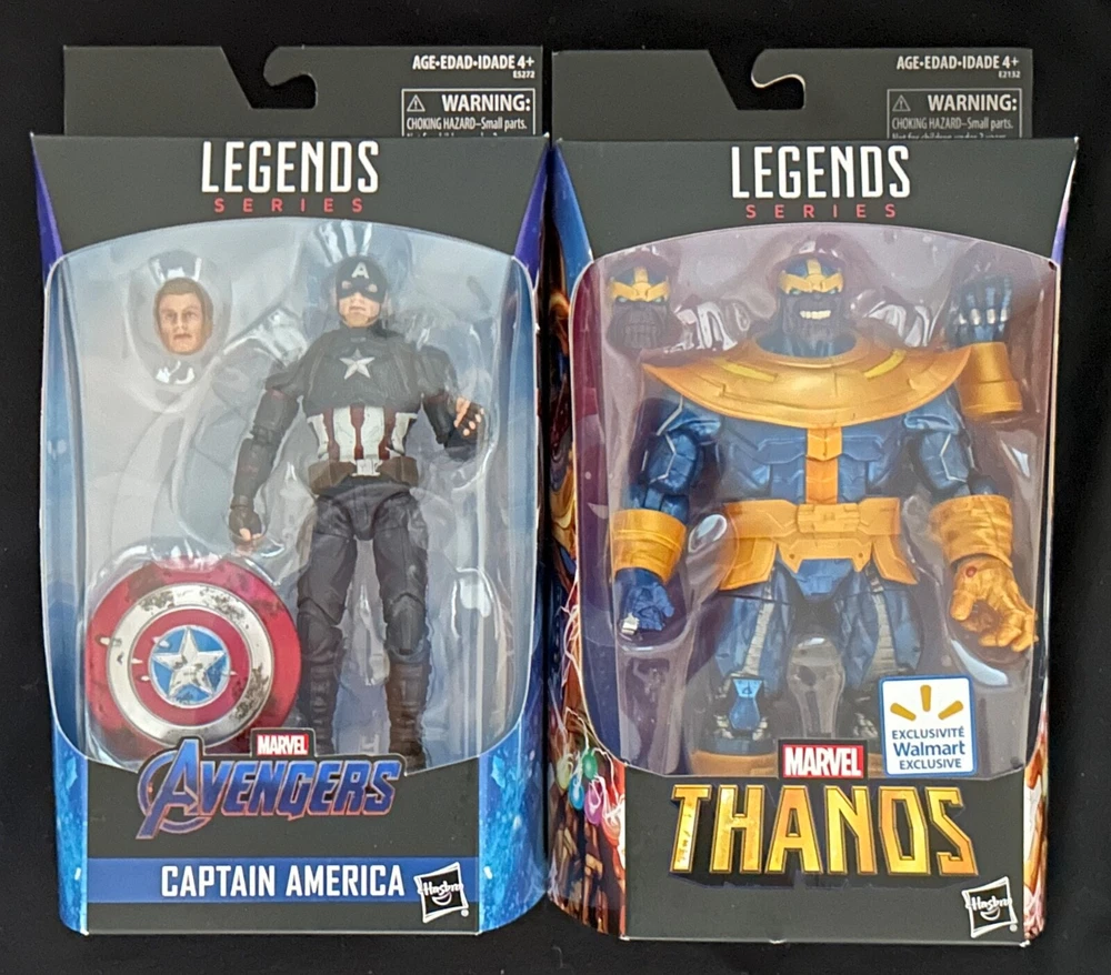 You are bidding on a brand new, sealed lot of 2 Marvel Legends Series 6" figures: Captain America (Power & Glory) and Thanos Walmart Exclusives. Packaging has some mild shelf wear, including cardboard creasing, edge dings, and bubble scuffing, and would NOT be considered mint condition (please review photos .) Seals are several years old, but they are intact. These items are packaged together and cannot be separated for individual sale. We have lots of other great Marvel items listed if you're interested in combined shipping. From a smoke-free, pet-free home. Please contact us with any questions prior to bidding. We strive to provide great customer service, so keep the lines of communication open. We ship to the Continental U.S., Canada, and select countries using eBay's Global Shipping Program. We will NOT ship through freight forwarders...please see below. As always, we are more than happy to combine shipping on multiple purchases in the same order, so please check out our other items for sale. Depending on the item's value, we ship using USPS Ground Advantage or Priority Mail with tracking. If you desire an alternate method of shipping, please notify us prior to paying for your item so we can properly invoice. For collectible items, you can be assured they are packaged carefully with appropriate boxes and packing material. We cannot accept returns unless the item is damaged during shipping. If this is the case, please contact us and we will work with you to make things right. Any return shipping will be the buyer's responsibility prior to issuing a refund. We reserve the right to cancel orders from bidders with less than five feedbacks, or those who have received or given more than five negative feedbacks in the past 12 months. This applies to third party sellers...see below. Absolutely NO Drop Shippers or freight forwarders. Orders shipping to a third party will be accompanied by an invoice with our company name. Requests to ship through freight forwarding companies will be cancelled, as this violates our terms of service. If it's going overseas, it's going via eBay Global Shipping…sorry, no exceptions. Thanks for shopping with us!