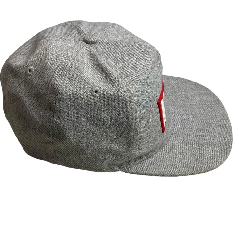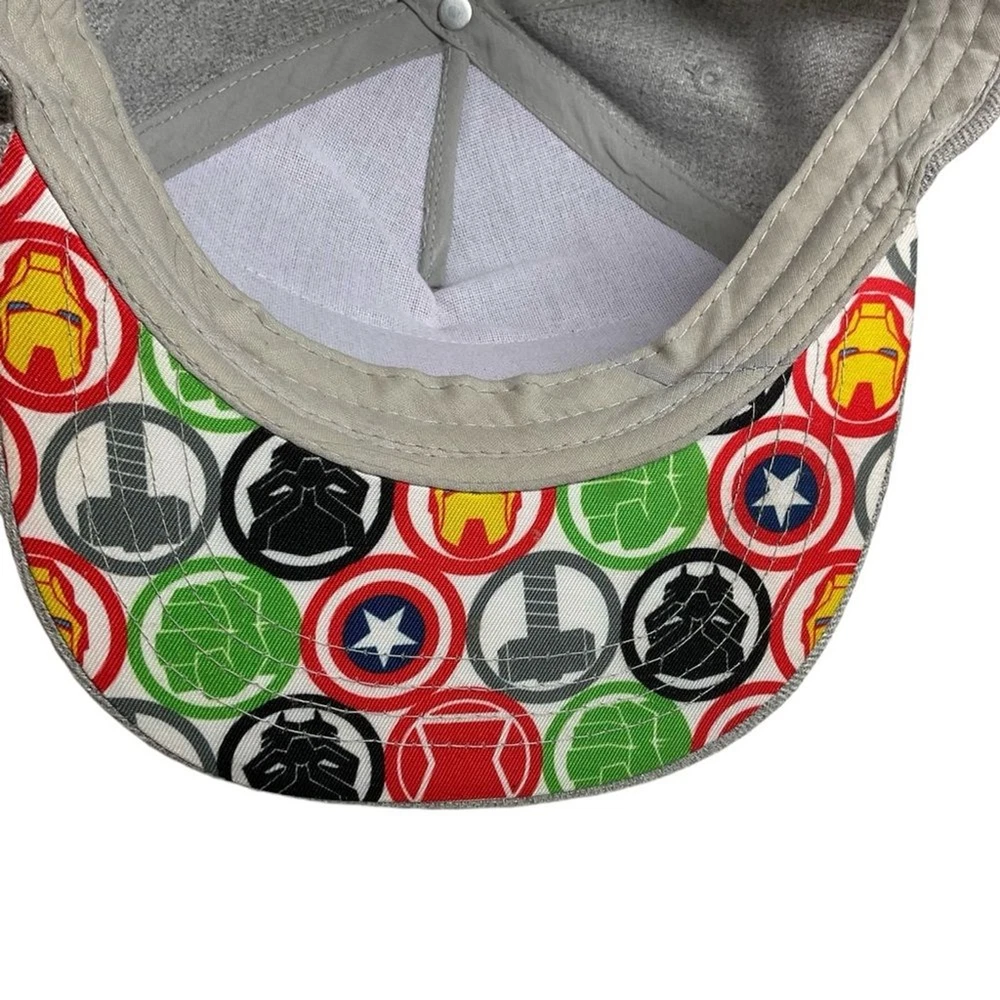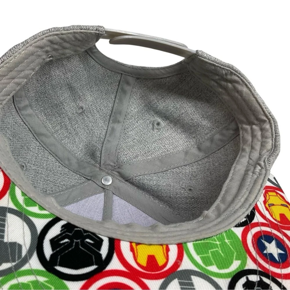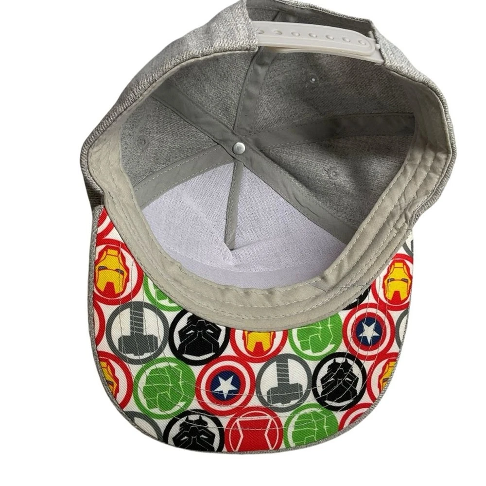 Marvel Logo Snapback Gray Red Truckers Hat Features: Superhero symbols under visor One size fits most Crown: 85% acrylic, 15% wool Upper visor: 100% polyester Under visor: 100% cotton Great pre-owned condition: no holes, rips, tears or stains.