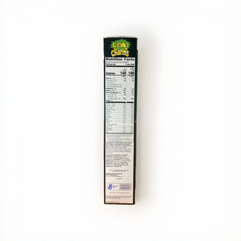 Unopened, sealed, great condition. Slight damage to box seen in images. Rare collectors item from 2021. Lucky Charms and Marvel collaboration. This limited edition Marvel Loki Charms Lucky Charms collaboration is a must-have for any cereal or comic book collector. With only 3500 made, this original piece is a rare find. The colorful charms feature the iconic Lucky Charms design with a Marvel twist, perfect for adding a touch of magic to any collection.