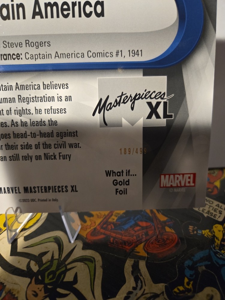 Marvel Masterpieces XL Captain America What If.....Gold Foil #'d 189/499. Perfect condition with no damage whatsoever.