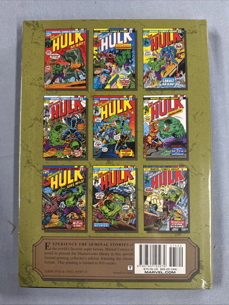 Marvel Masterworks #235 INCREDIBLE HULK Vol #10 DM HC (2016) Global Shipping Description Marvel Masterworks #235 INCREDIBLE HULK Vol #10 DM HC (2016) Global Shipping (W) Various (A/CA) Herb Trimpe The Hulk is out for revenge! And he'll have plenty of heavy hitters to unleash his anger on in the latest Marvel Masterworks! The Abomination, Juggernaut and Rhino are just the first in a murderer's row of earthshaking enemies before the ever-Incredible Hulk. Then, a battle with the Cobalt Man will send Hulk raging to Attilan, home of the Inhumans! To save their hidden city, they launch Hulk into deep space - but a mean green course correction lands Hulk on Counter-Earth! There, he and Adam Warlock must save the other Earth before an express rocket home lands the Hulk in the Canadian wild, where he'll battle the Wendigo - and in one of the most important stories in Marvel history, face off against Wolverine in the X-Man-to-be's first appearance! Collecting INCREDIBLE HULK (1968) #171-183. 272 pages Rated T Masterworks is new, in Near Mint unread factory shrink wrapped condition. Payment We prefer Paypal payment but also accept all approved eBay payments. Buyer must send payment within 3 days of purchase. Please include listing number in your payment. Shipping Buyer pays $4.75 for MEDIA MAIL shipping for orders in the UNITED STATES. Combine shipping is available at NO additional cost for in the United States. For international orders please use eBay calculator for shipping cost. We accept Chks, Mo and credit cards via Paypal. Please check out our other auctions, EBAY store listings. Thanks for looking.
