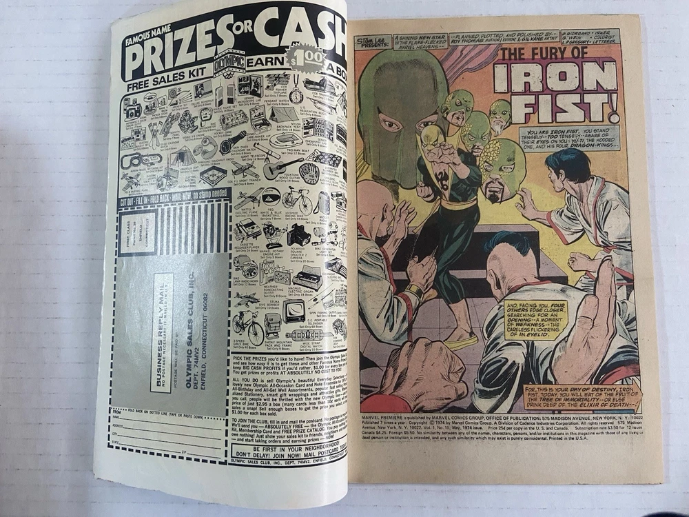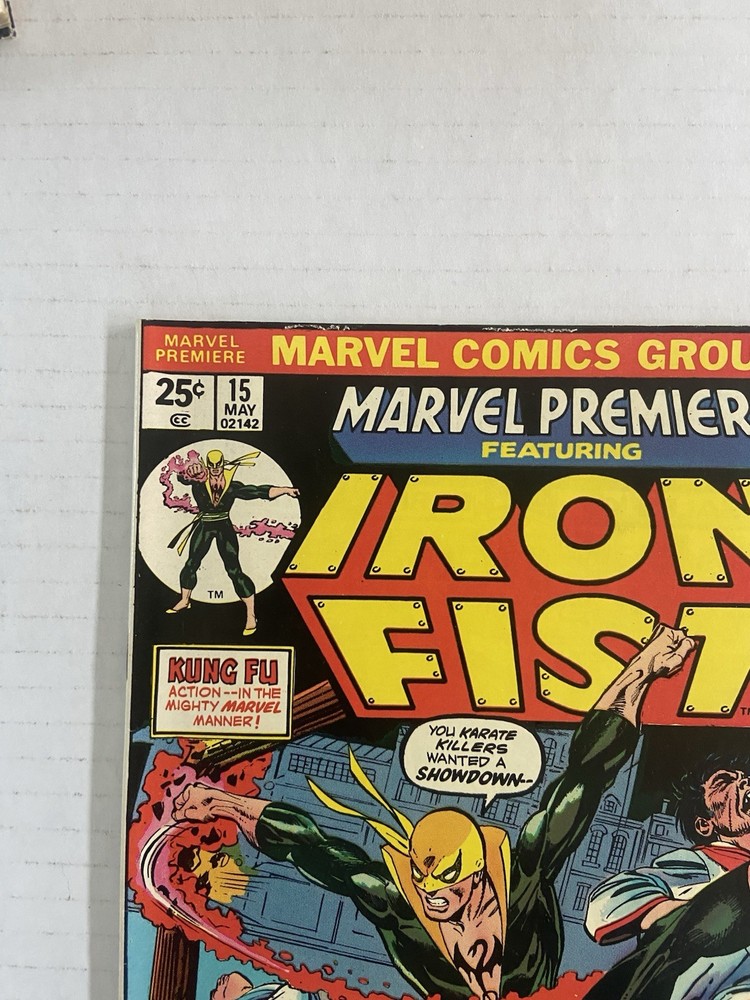 Marvel Premiere #15 (1977) First appearance of Sabretooth — classic Bronze Age Marvel key. Condition notes: • Clean, bright front cover with strong colors • Light spine ticks and minor edge wear consistent with mid-grade books • Back cover is clean; coupons intact • No major creases or writing noted Please review all photos closely for full condition details. Book ships bagged, boarded, and securely packed in a Gemini-style mailer. Fast and careful shipping. Thank you for your purchase from Kitty Kat Comics.
