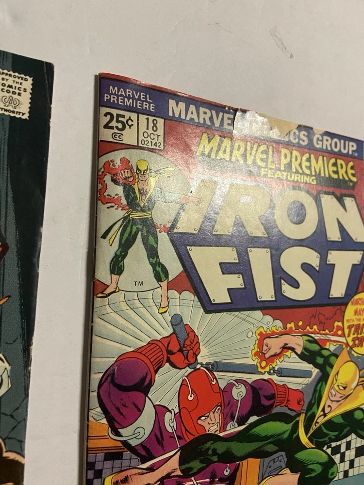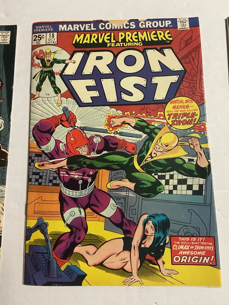 This listing features a Bronze Age Marvel Premiere Iron Fist reader lot, including issues #16, #18, and #22. A great early run showcasing classic Iron Fist stories and artwork from the mid-1970s. All three books are reader copies with visible wear consistent with age, including light creasing, edge wear, and spine stress. Nothing hidden—please review all photos carefully, as they are an important part of the description. Books are packed securely and shipped with care to ensure safe arrival. Kitty Kat Comics
