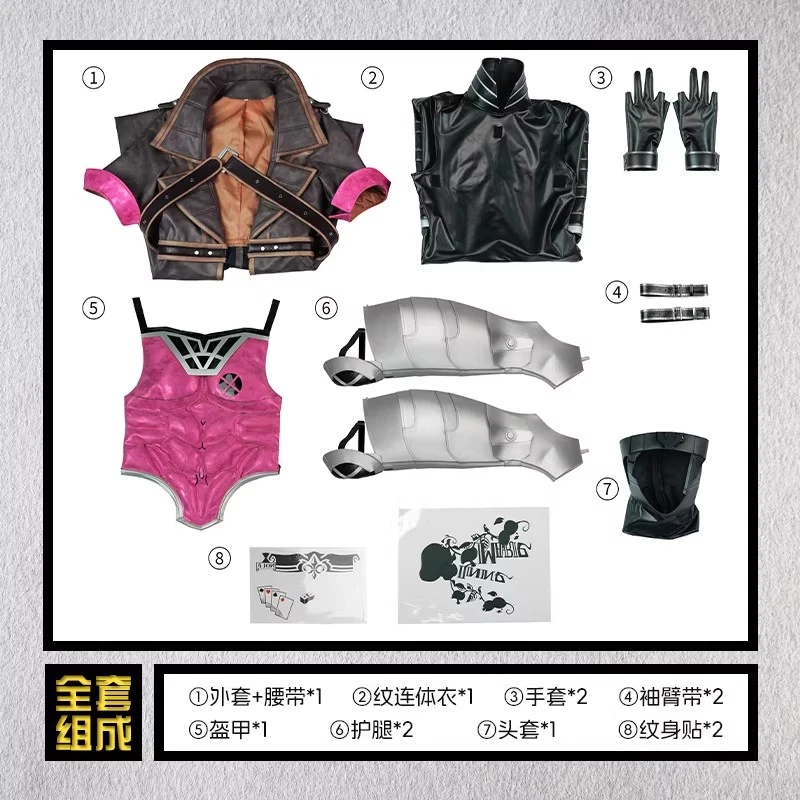 Welcome To My Store Marvel Rivals Gambit Cosplay Costume Outfit Halloween Cos Full Set Party Dress Outfit:Coat+belt+jumpsuit+gloves * 2+armbands * 2+armor+leg guards * 2+headgear+tattoo stickers Package:1pc Due to the different monitor and light effect, the actual color of the item , might be slightly different from the color showed on the pictures,Thanks for your understanding. Note: About Shopping: 1.Delivery time depends on destination and other factors, it may takes up to 15-30 days. If you don't receive the item after 35 days, please contact us, we'll investigate and solve the delivery problem. 2.Shipping days exclude weekends and public holidays. 3.Import duties, taxes, and charges are not included in the item price or shipping cost. These charges are the buyer's responsibility. Please check with your country's customs office to determine what these additional costs will be prior to bidding or buying. About Payment: 1.We only ship to confirmed ebay addresses. When you make payment,please confirm it.Thank you. 2. 30 days money back or item exchange, seller pays return shipping; 3. ebay Money Back Guarantee: Get the item you ordered or get your money back. Covers your purchase price and original shipping. About Goods: 1.According to manual measurement, there maybe 1-2 cm difference, We appreciate your understanding! 2.The real color of the item may be slightly different from the pictures shown on website caused by many factors such as brightness of your monitor and light brightness. 3.pls order the item you need, and make sure you order the right item you really want. Customer Service: We will reply your message within 24 hours Mon-Sat, and 48 hours on Sunday Feedback: We maintain high standards of excellence and strive for 100% customer satisfaction! Feedback is very important to us. pls contact me first before you leave Neutral or Negative feedback. i will do my best to solve the problem, thanks! if you want return item and you should contact me or sent a message to me frist Thanks.Return is accepted within 30 days or 60days after the buyer's receiving the item. We provided 30 Days Money Back Warranty. NO return or exchange will be accepted after 30days or 60days from the date of purchase. After getting the returned item, we will refund the customer at the item's price ( excluding the shipping costs to and from ).Please understand that shipping and handling fee is not refundable. Buyer is responsible for shipping costs incurred shipping products back. if the item is broken when you received it and could please do not sign for this item, and you should contact me or post office frist, i will do my best to help you.
