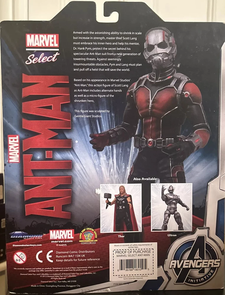 Marvel Select - Ant-Man Movie Paul Rudd By Diamond Select 2013. Includes Alternate Hands And Small Ant-Man Figure. Mint In Sealed Package. Has Minor Shelf Wear. ----------As per the Ebay Regulations ---- International Buyers – Please Note: Import duties, taxes and charges are not included in the item price or shipping charges. These charges are the buyer's responsibility. Please check with your country's customs office to determine what these additional costs will be prior to bidding/buying. These charges are normally collected by the delivering freight (shipping) company or when you pick the item up – do not confuse them for additional shipping charges. We do not mark merchandise values below value or mark items as "gifts" - US and International government regulations prohibit such behavior.