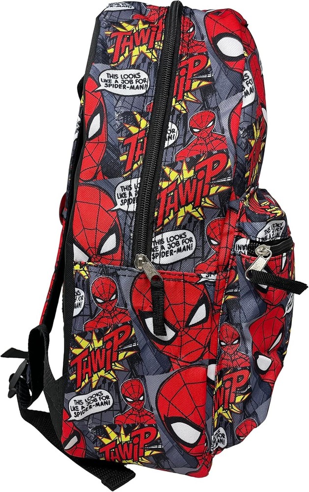 Exterior dimensions: 16" x 12" x 5" Interior compartment and features: laptop sleeve Exterior compartments and features: Double zipper pull on main compartment and 1 small accessories pocket and 2 mesh side pockets Fabric: Polyester