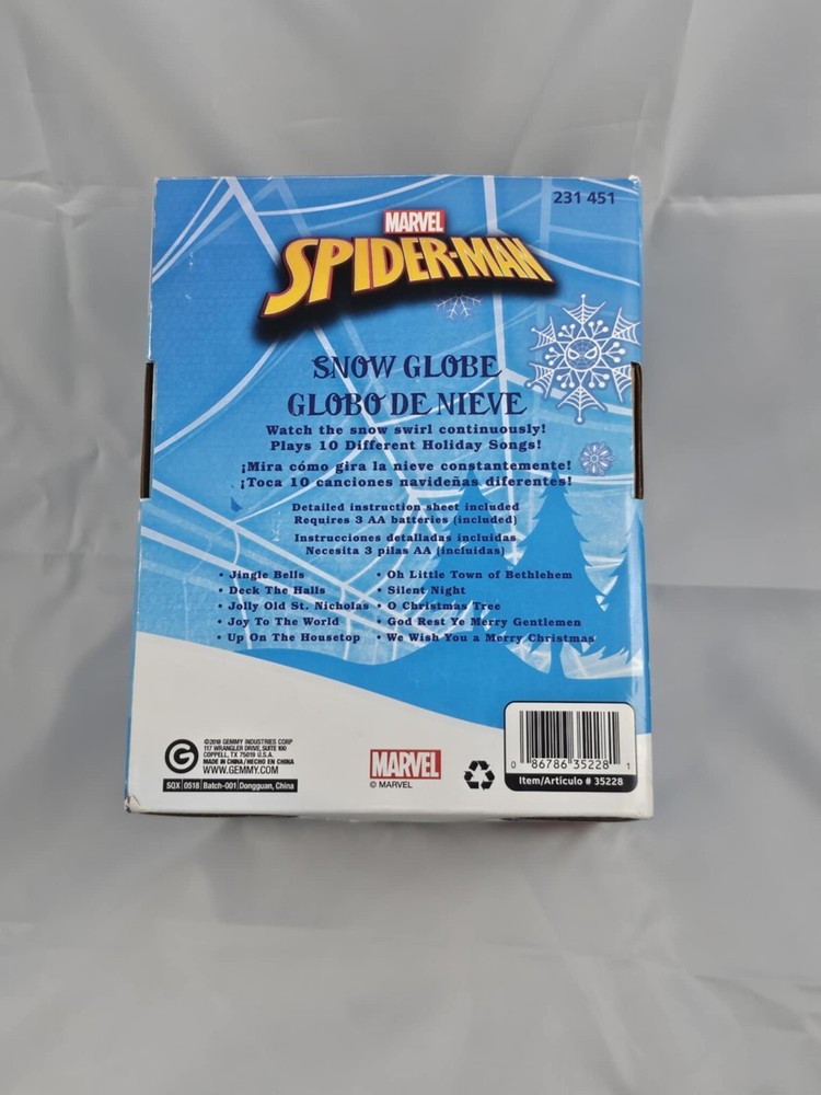 Marvel Gemmy Waterless Plastic Spiderman Musical Christmas Snow Globe New Works new in box