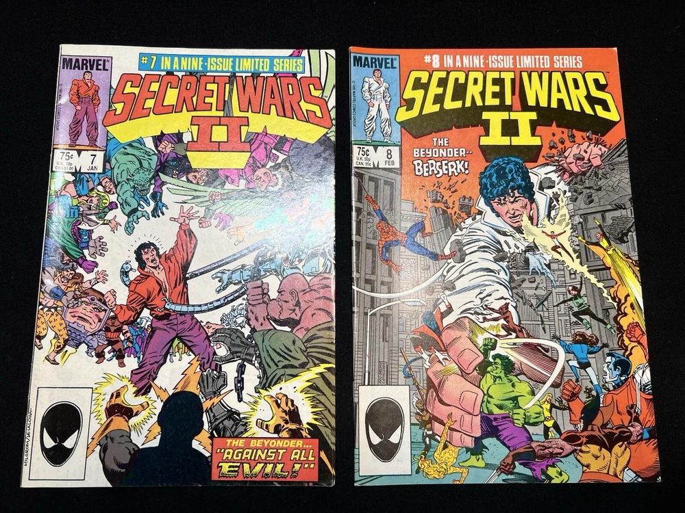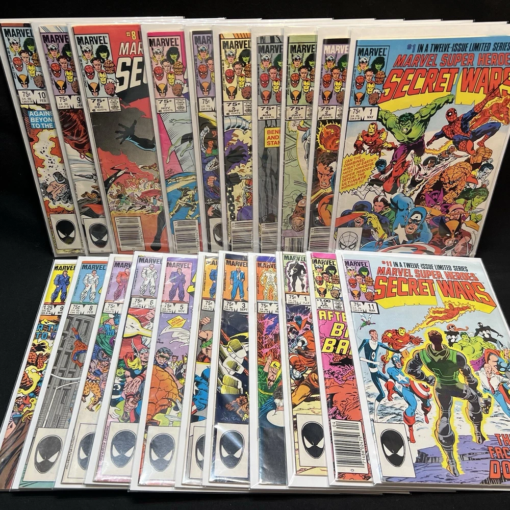 Shipping and item specifics: This listing includes all twelve issues of Marvel Super Heroes Secret Wars (#1-12) and Secret Wars II (#1-9) Low to Mid Grade Copies, please see pictures and ask questions! $6.99 Flat Rate Shipping FOR ALL IN STOCK ITEMS up to 20 comics! All shipments go out within 2 business days by USPS Ground Advantage. I do NOT SHIP MEDIA MAIL Shipments will be secured to a filler board with blue painters tape, wrapped in bubble wrap in a Gemini Mailer. Photos are images of the front and back of the actual comics you will receive. Comics WILL be individually bagged and boarded and come from a SMOKE-FREE location. If pre-orders/presale items are purchased with in stock items, there will be an additional shipping charge as the in stock items will go out right away and the pre-orders/presale will ship out within 2 business days of release. For combined preorder/presale items, please request invoice. -PLEASE SEE MY OTHER LISTINGS! I DO COMBINE SHIPPING. For auctions and accepted offers PAYMENT MUST BE MADE WITHIN THREE DAYS If you have any questions or concerns prior to or upon receiving the item listed, please don?t hesitate to reach out and I will do my best to respond as soon as I can :-)