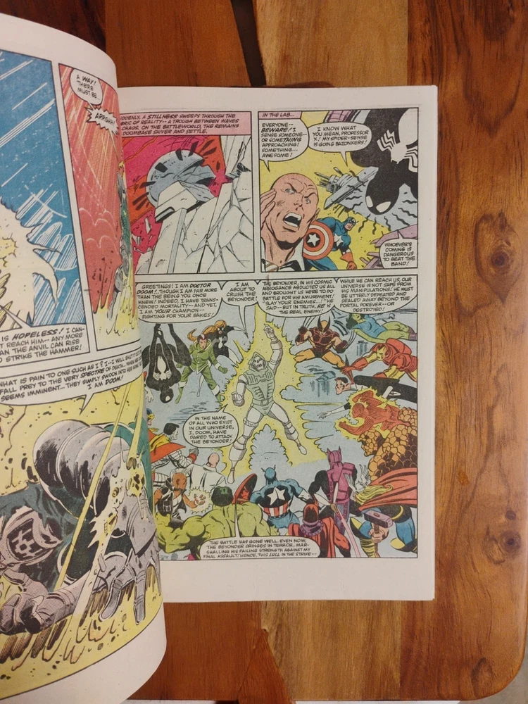 The Marvel Super-Heroes Secret Wars #10 comic book, published by Marvel Comics in February 1985, features a diverse lineup of popular characters from the Marvel Universe. With artwork by John Beatty, Christie Scheele, and others, this issue showcases showdowns between characters like Captain America, Magneto, Doctor Doom, and more. Set in the Copper Age era of US Comics, this direct edition comic book falls under the genre of Superheroes and is a must-have collectible for fans of the Marvel Universe.