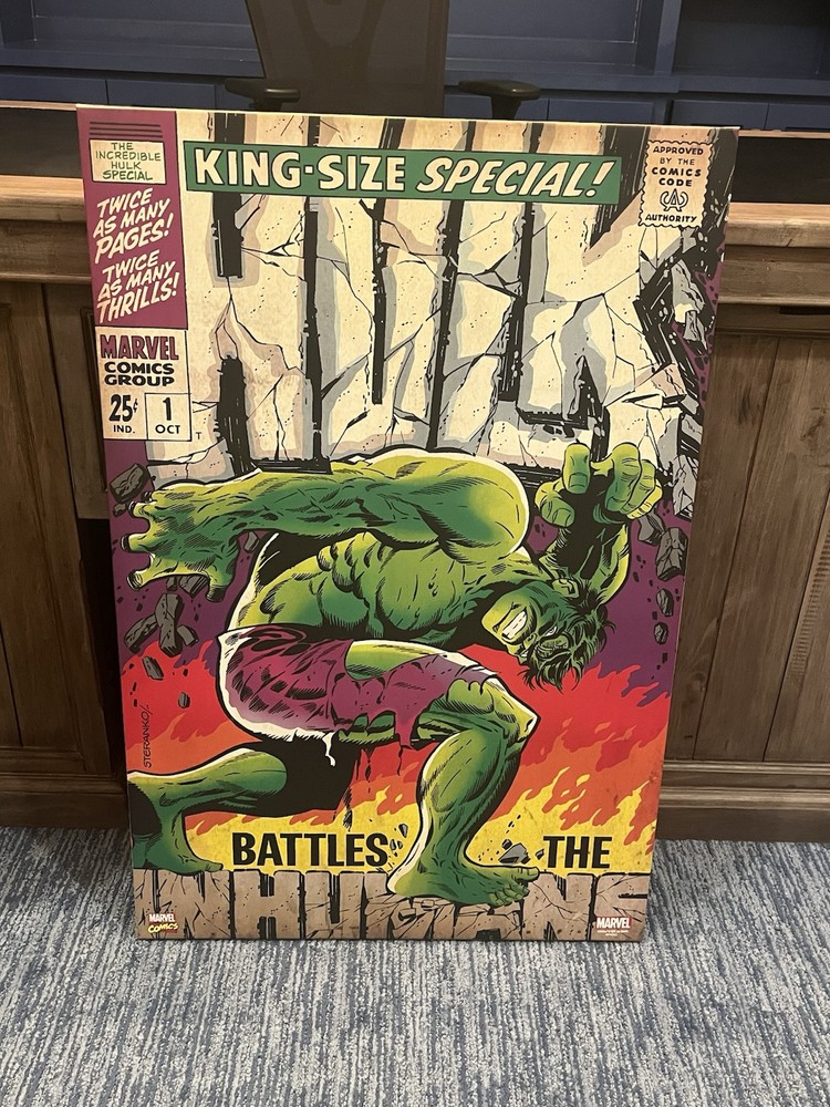 Set of 10 Marvel canvas wall art posters. Each poster is 36 x 24. They are made of a framed canvas and include the following characters: Iron Man, Captain America, Spider-Man, Hulk, Wonder Woman, Batman, and Superman. Looking to sell the full set but open to offers if single pieces are desired. These posters are in great condition!