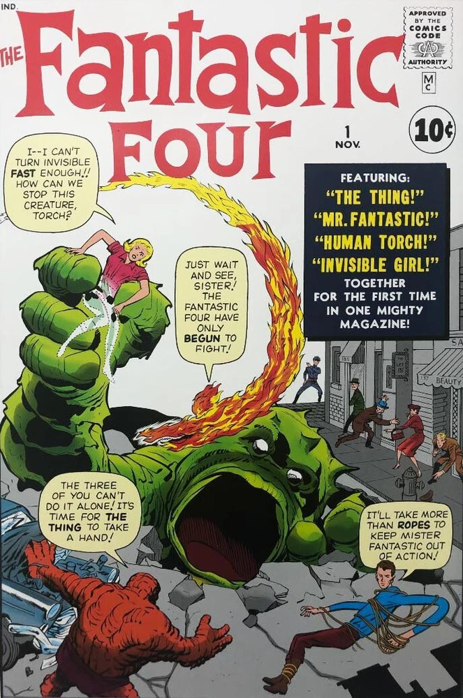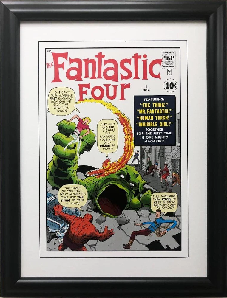 Marvel Comics Group "The Fantastic Four" #1 Meet Marvel's First Family: Mr. Fantastic, the Invisible Girl, the Human Torch, and The Thing. In this first issue, the FF must confront the menace known as the Mole Man and his giant underground monsters, as they attack atomic plants all over the world. This artwork is a: Poster of a 1970s comic book cover (Marvel copyright 2014) Custom Framed in a black wood frame Custom matted in a white mat with a black core v-groove Frame Size: 16.5" x 21.5" Image Size: 9.75" x 14.75" Framed in the USA Comes complete with installed "ready to hang" hardware Check out our store...Would make a great pairing or grouping with other Marvel posters! Interested in different framing? Let us know. <img src="http://images.paypal.com/images/lgo/logo3pv.gif" border="0" width="88" height="33" alt="Pay me securely with any major credit card through PayPal!" title="Pay me securely with any major credit card through PayPal!"></a></td></tr> <tr><td align="center"><img src="http://images.paypal.com/images/icon_visa.gif" border="0" alt="Visa"> <img src="http://images.paypal.com/images/icon_mastercard.gif" border="0" alt="MasterCard"> <img src="http://images.paypal.com/images/icon_discover.gif" border="0" alt="Discover"> <img src="http://images.paypal.com/images/icon_amex.gif" border="0" alt="American Express"> <img src="http://images.paypal.com/images/icon_echeck.gif"alt="eCheck" border="0"></td></tr></table> <