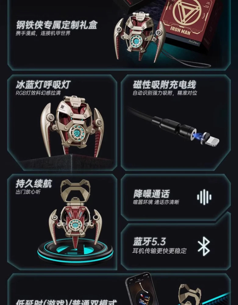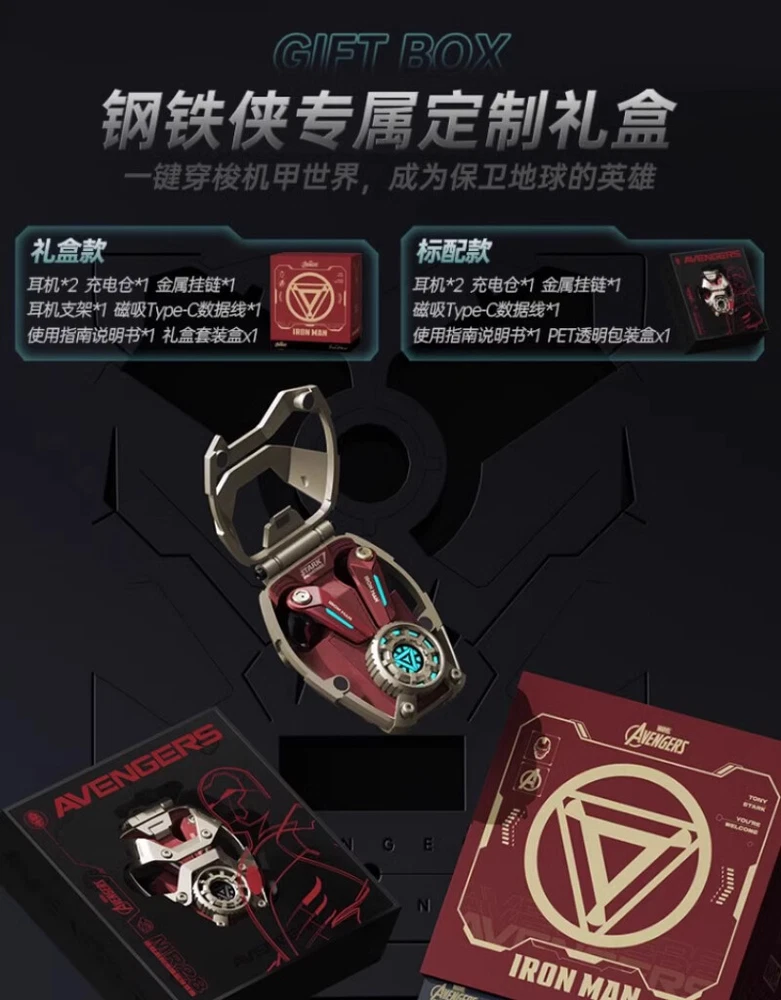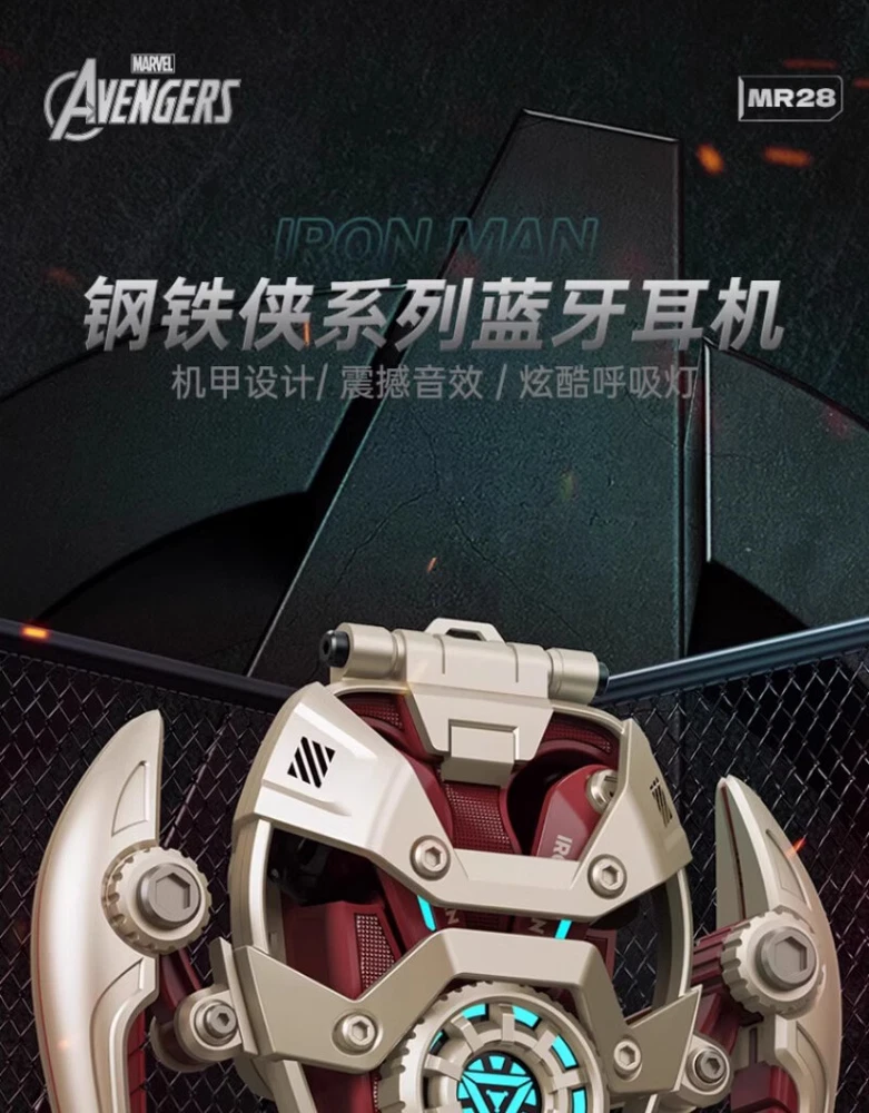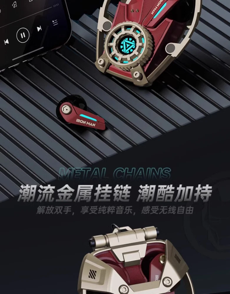 Marvel Tony Stark Iron Man MR28 Mark28 Jack Wireless Bluetooth Headset Chain