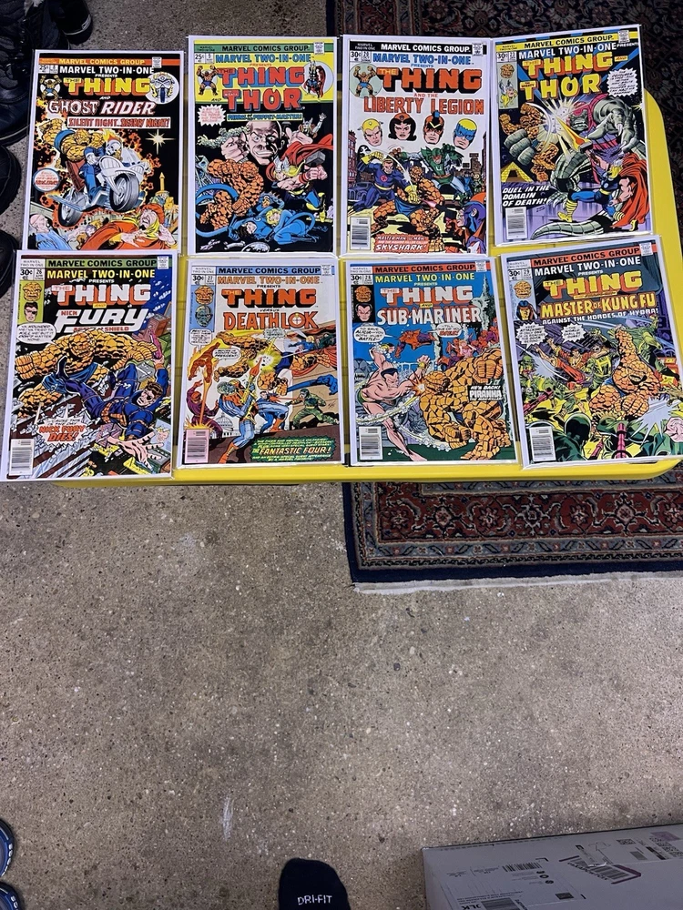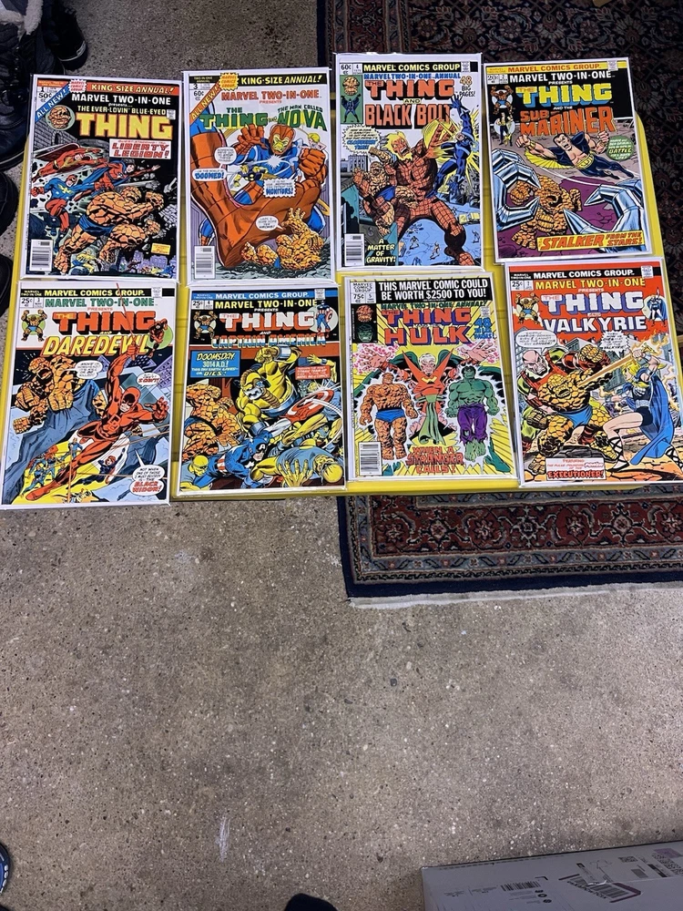 Marvel Two In One Huge 63 Issue Mixed Bundle Lot Featuring The Thing. All books are in Mylar bag and Board and Range from Fine to VF to NM.