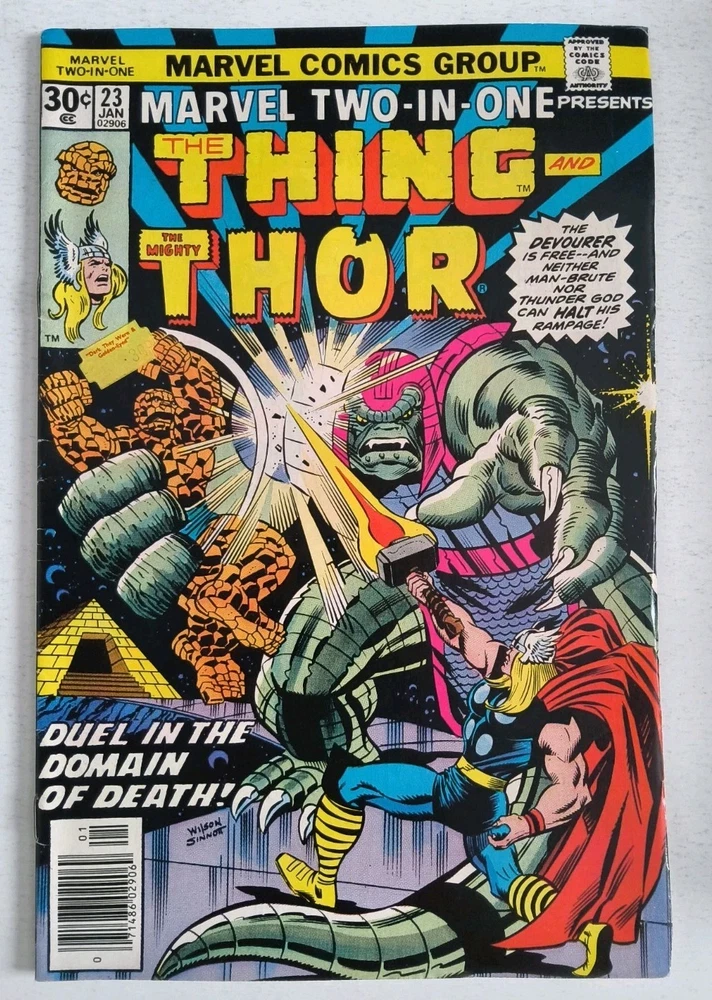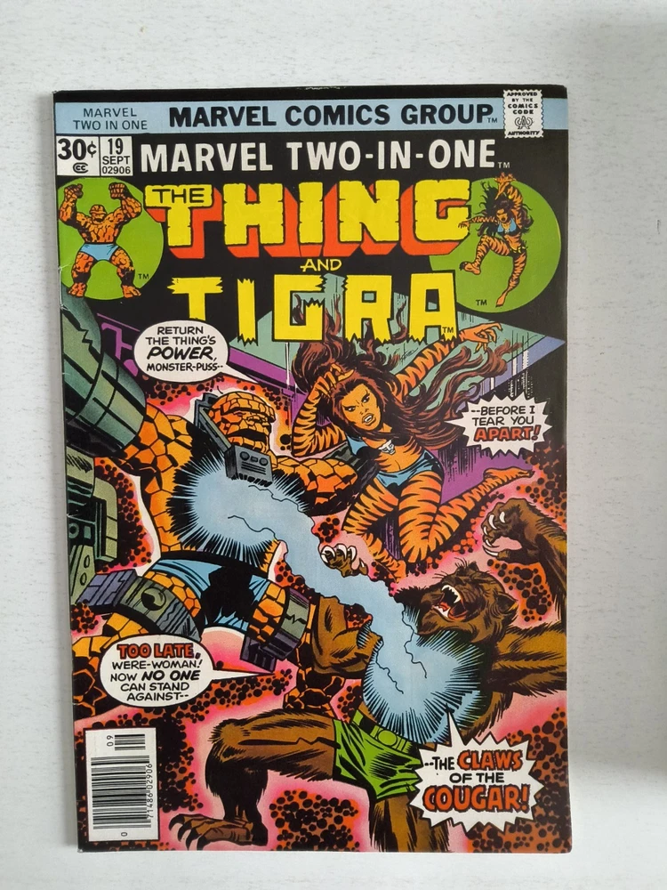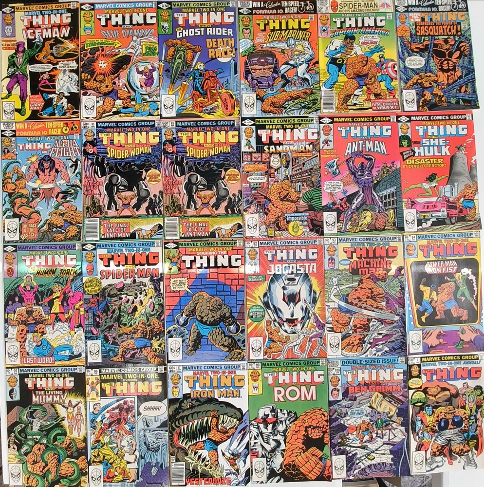 The product is a lot of 64 Marvel Two-in-One comic books from the years 1973 to 1983, featuring issues #1 to #100*. The lot includes first appearances of various characters such as Helio, Sidewinder, Phoebius, and Maelstrom, among others. The comics belong to the Bronze Age era and are part of the Marvel (MCU) universe. With a mix of characters from the Fantastic Four and Avengers, this vintage collection offers a colorful and immersive reading experience for fans of US comics. * Includes #1 FN/VF MAN-THING APPEARANCE #2 FN/VF #3 FN MVS HAMMERHEAD #4 VF #5 FN+ MVS SILVER SURFER #6 FN+ MVD GREEN GOBLIN #7 VF MVS MANTIS #8 VF GHOST RIDER APPEARANCE #9 VF+ #10 VF+ BLACK WIDOW COVER #11 VF+ #12 VF+ MVS MANTIS #13 VF + MVS CONAN #14 FN+ MARK JEWELERS INSERT #16 VF #19 VF TIGRA COVER #20 VF+ LIBERTY LEGION #23 VF #42-47 NM-VF #49-51 VF BF- #53 VF-Quasar Appearance #54 VF+ 1ST APPEARANCE OF TITANIA #55-58 NM- VF+ 1ST APP OF AQUARIAN #60-62 NM- VF+ 1ST APP OF HER #63-65NM-VF 1ST Sidewinder Serpent Squad #71 VF/NM 1ST APP Maelstrom, Gronk, Helio #76 FN #79-97 ALL NM- VF #99-100 ALL NM- VF ANNUAL #6 & 7 1ST APP OF CHAMPIONS - Beautiful lot, see pictures - Bagged and boarded - Shipped with Gemini packing to insure no damage during shipping - UPS ground Check out our 1000s of comics in our store We combine shipping