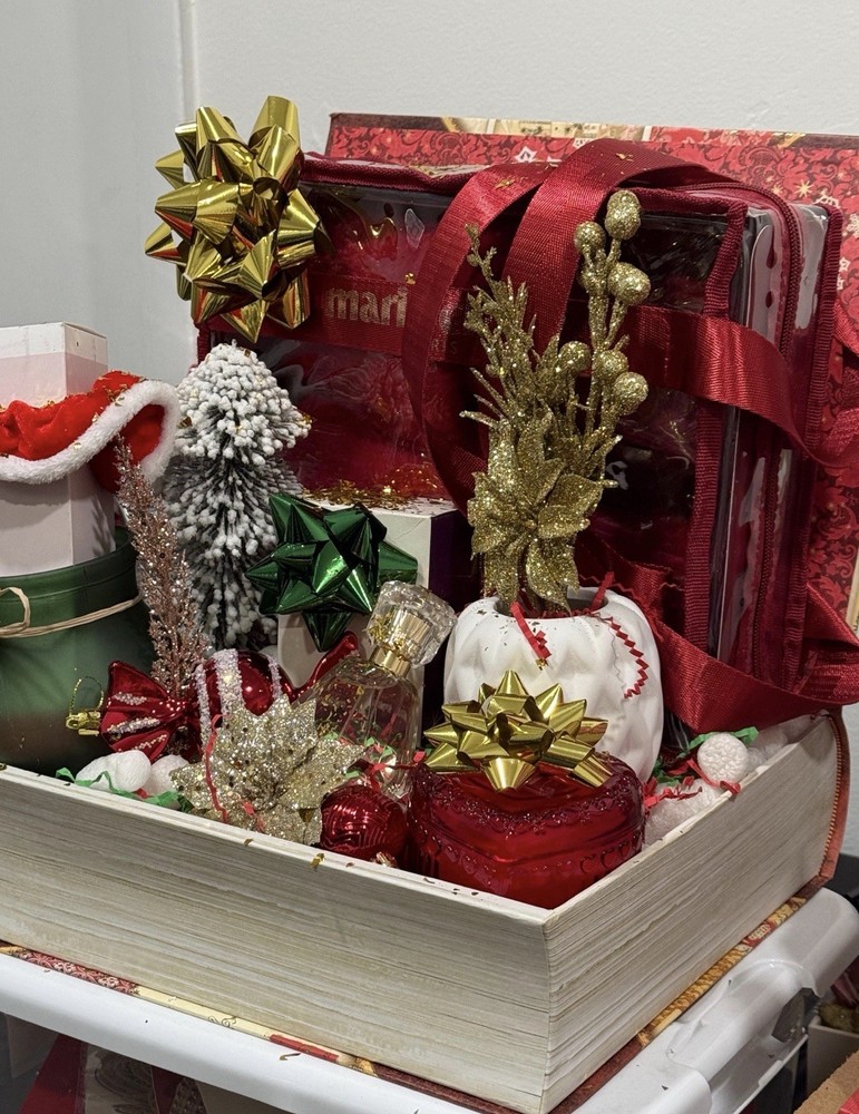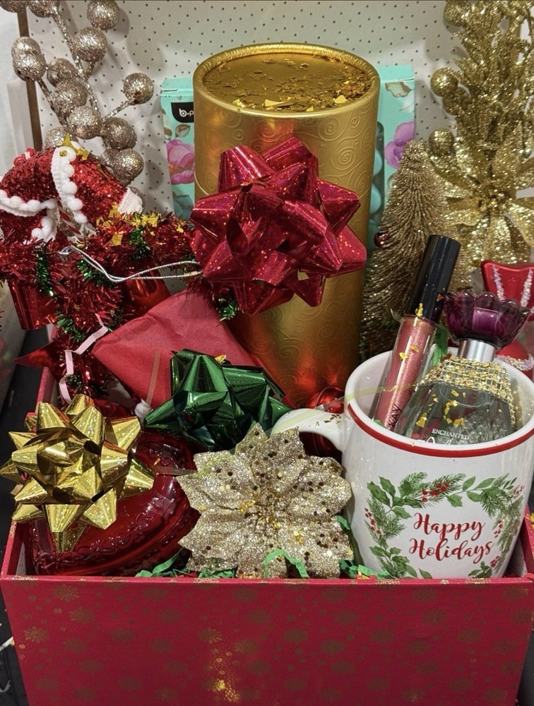 Mary Kay Christmas Gift Basket with Cosmetics, Festive Mug & Ornaments