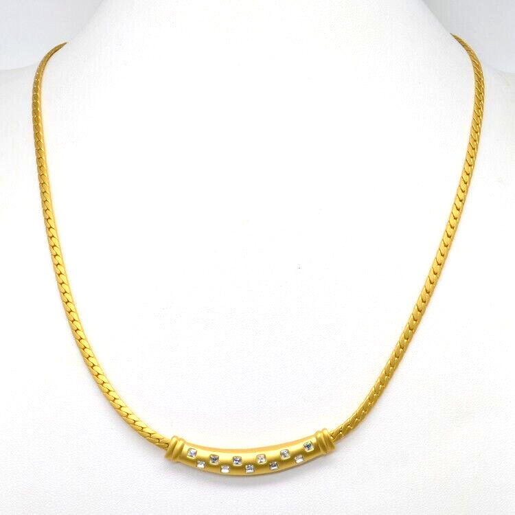 Vintage 1970s Christian Dior Gold Choker Necklace with Ruby & Diamond Crystals and Matching Earrings