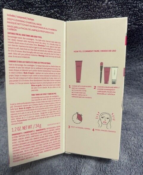Formulation: Cream, Mask, Gel Skin Type: All Skin Types Period After Opening (PAO): 12M Active Ingredients: Bentonite Clay, Charcoal MPN: 179758 Type: Mask Set Main Purpose: Acne, Clogged Pores, Anti-Aging, Blackheads, Excessive Oil Length: United States Ingredients: Glycerin, Kaolin Clay, Water, Charcoal Size: Mini Features: Perfume-Free, All Natural Ingredients, Contains Salicylic Acid, Nourishing, pH Balanced, Animal Cruelty-Free, Colorant-Free, Fair Trade, Hydrating, Oil-Free, Dye-Free, Unscented, Alcohol-Free Number of Sheets: Less Than 50 Sheets Brand: Mary Kay Body Area: Face Color: Black Volume: 0.1 fl oz