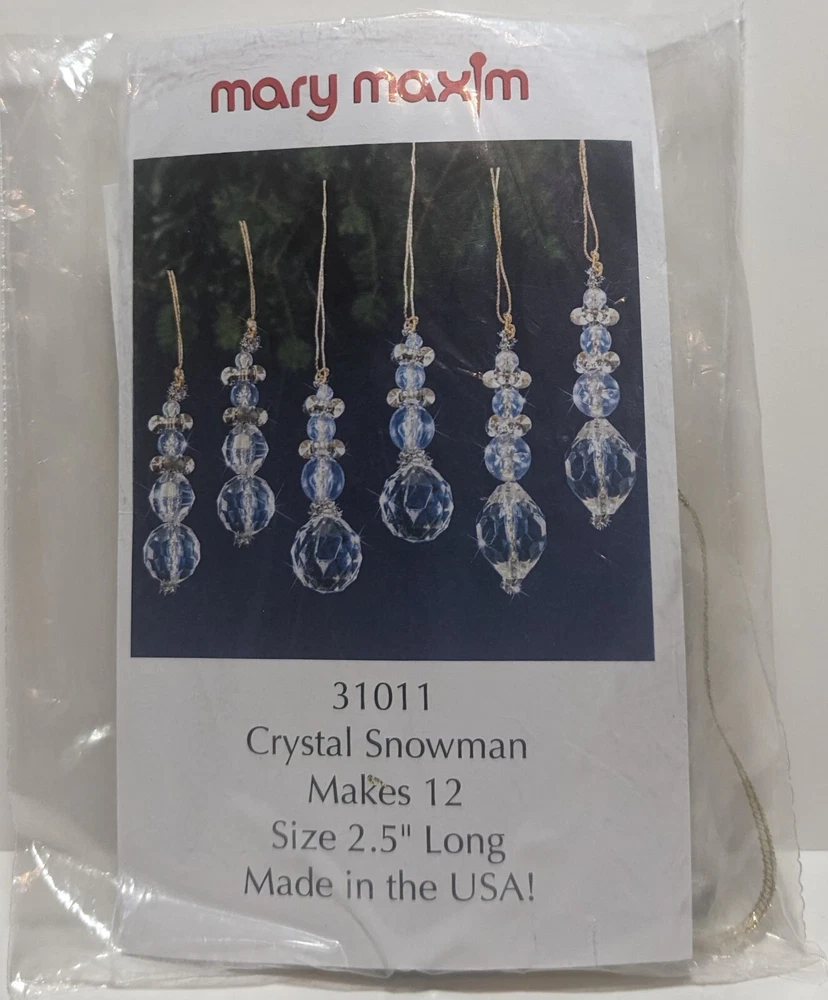 Mary Maxim 31011 CRYSTAL SNOWMAN Beaded Christmas Ornament Kit Makes 12 NEW!