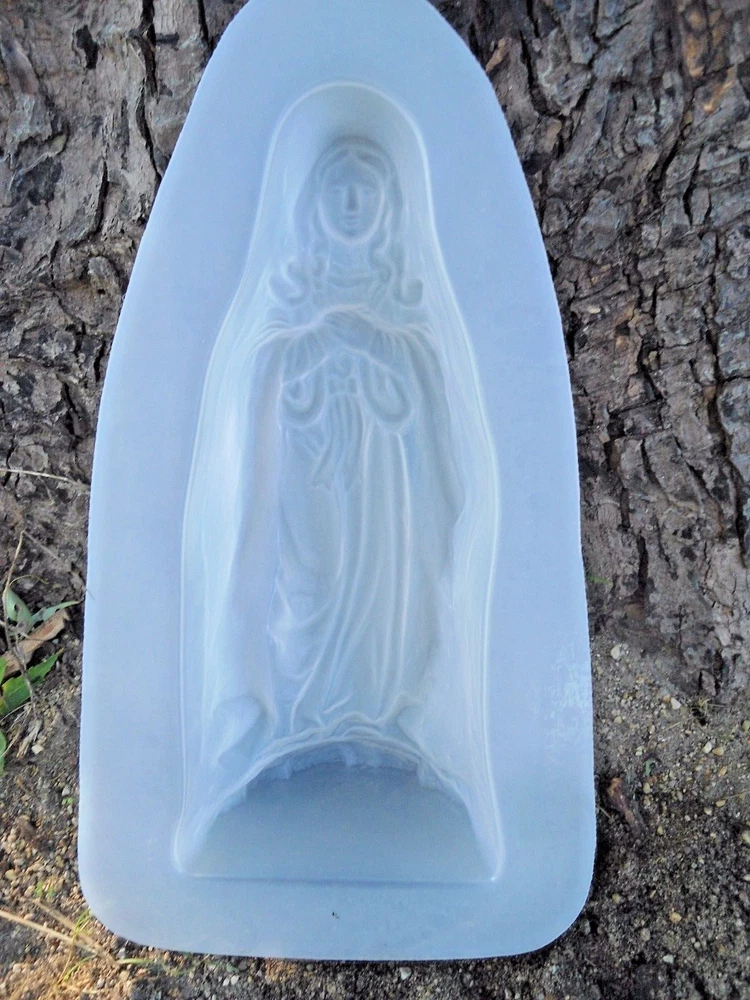 Mary standing statue mold 17x6x5 inches concrete plaster reusable for multiple casts